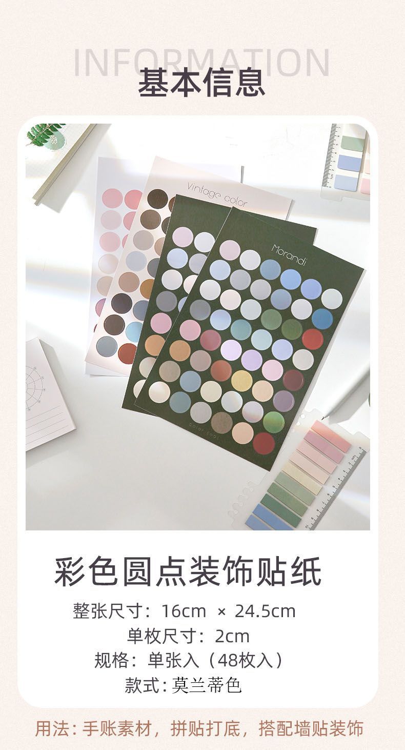 Estilo Sal Color Morandi Papel Adhesivo de Punto Tarjeta de Pared Pintura Decorativa Redondo Alrededores de Cuenta de Mano ins Adhesivo para Foto