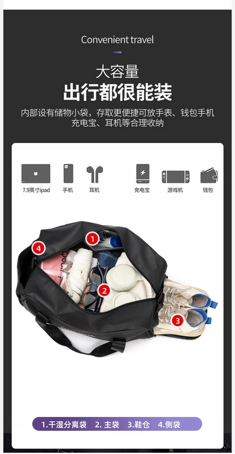 Bolsa de almacenamiento de gran capacidad, bolsa para guardar ropa seca y húmeda, bolsa deportiva para fitness, bolsa de equipaje portátil, bolsa para viajes de corta distancia