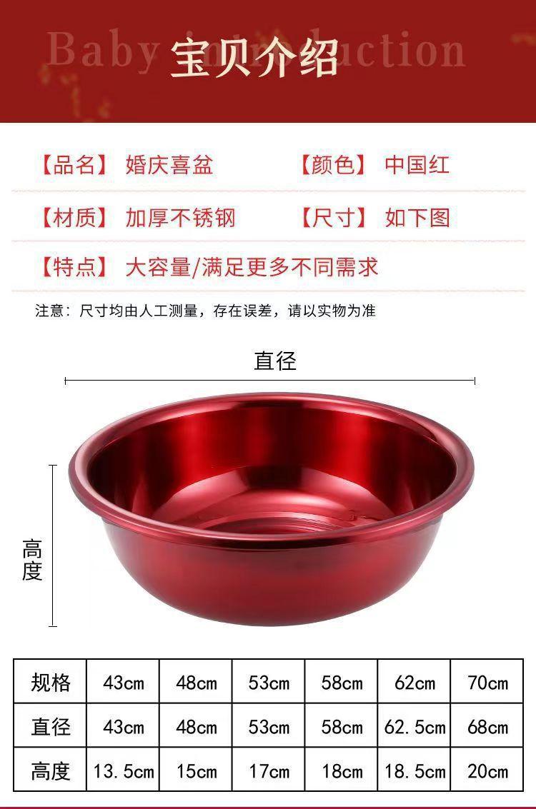 Lavabo de acero inoxidable para baño de pies, para novia, grande, para boda, rojo, chino, festivo, suministros para boda