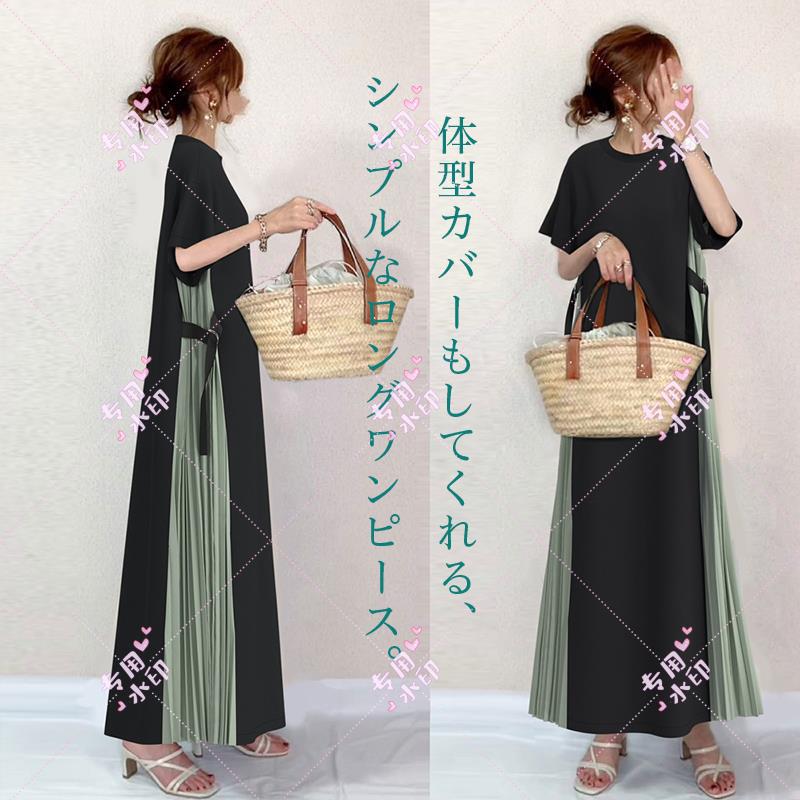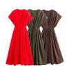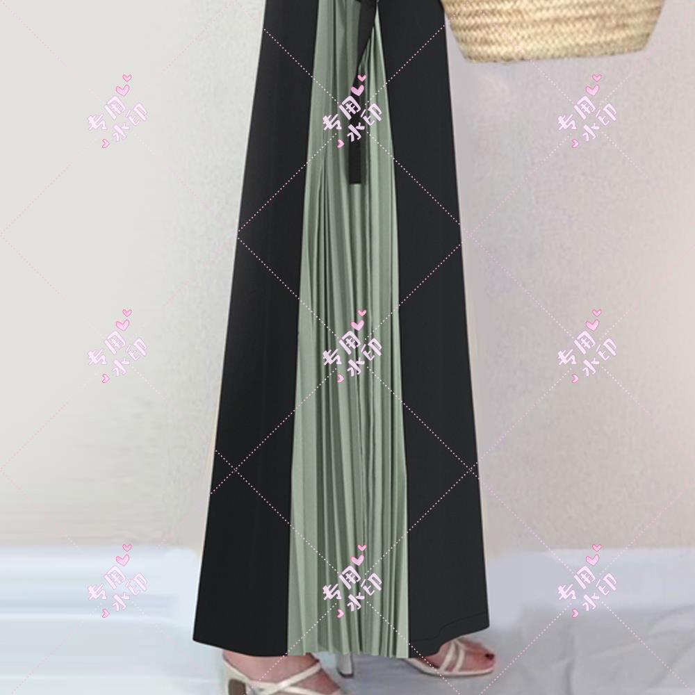 Pedido original de comercio exterior nuevo vestido largo de cuello redondo y manga corta 1112#