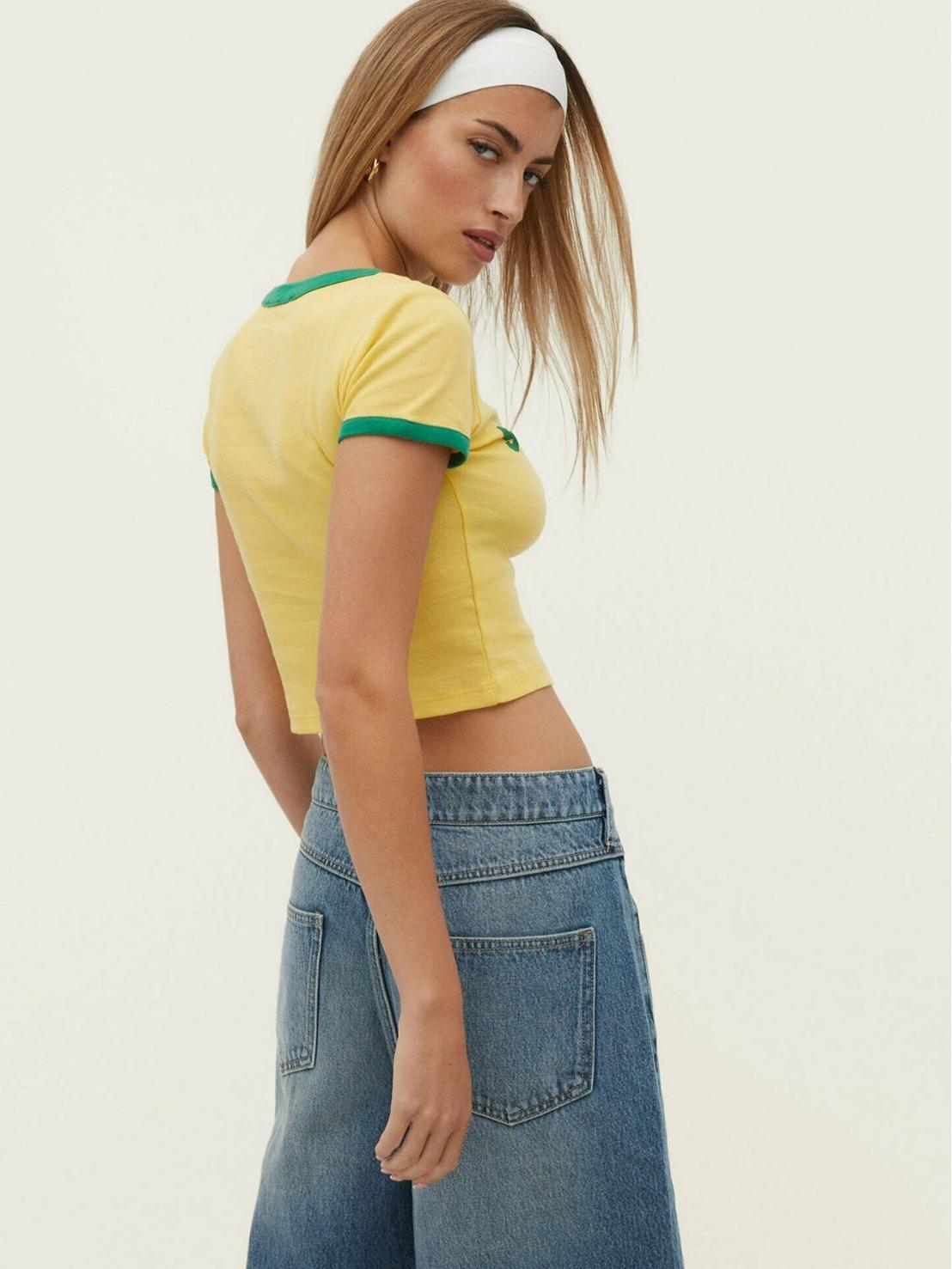 Productos Nuevos de Primavera Europeos y Americanos 2025 Camiseta Casual de Manga Corta y Cuello Redondo para Mujer con Estampado de Letras de Estilo Sencillo