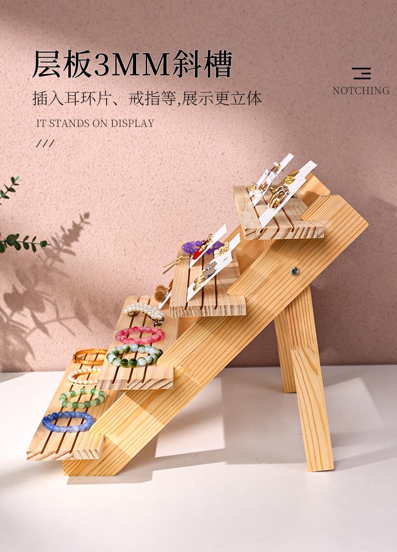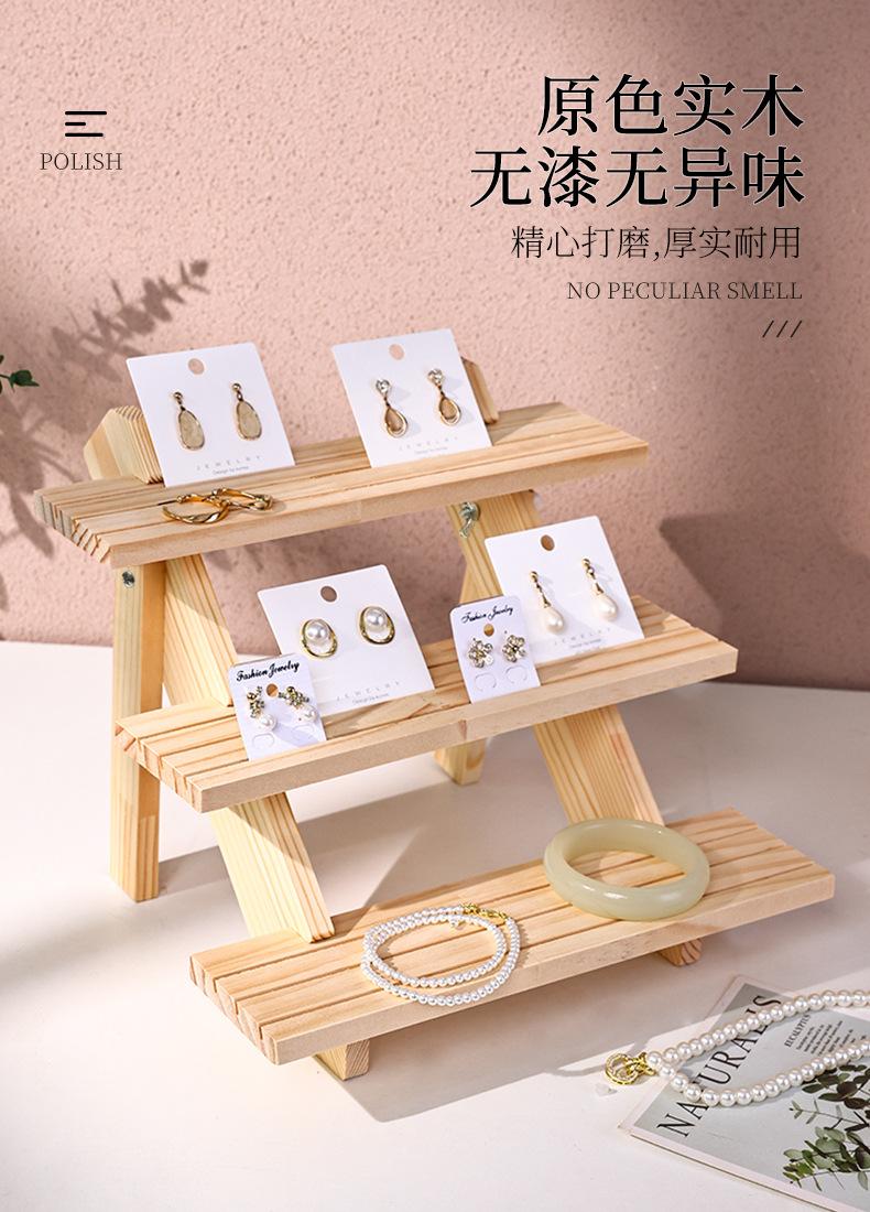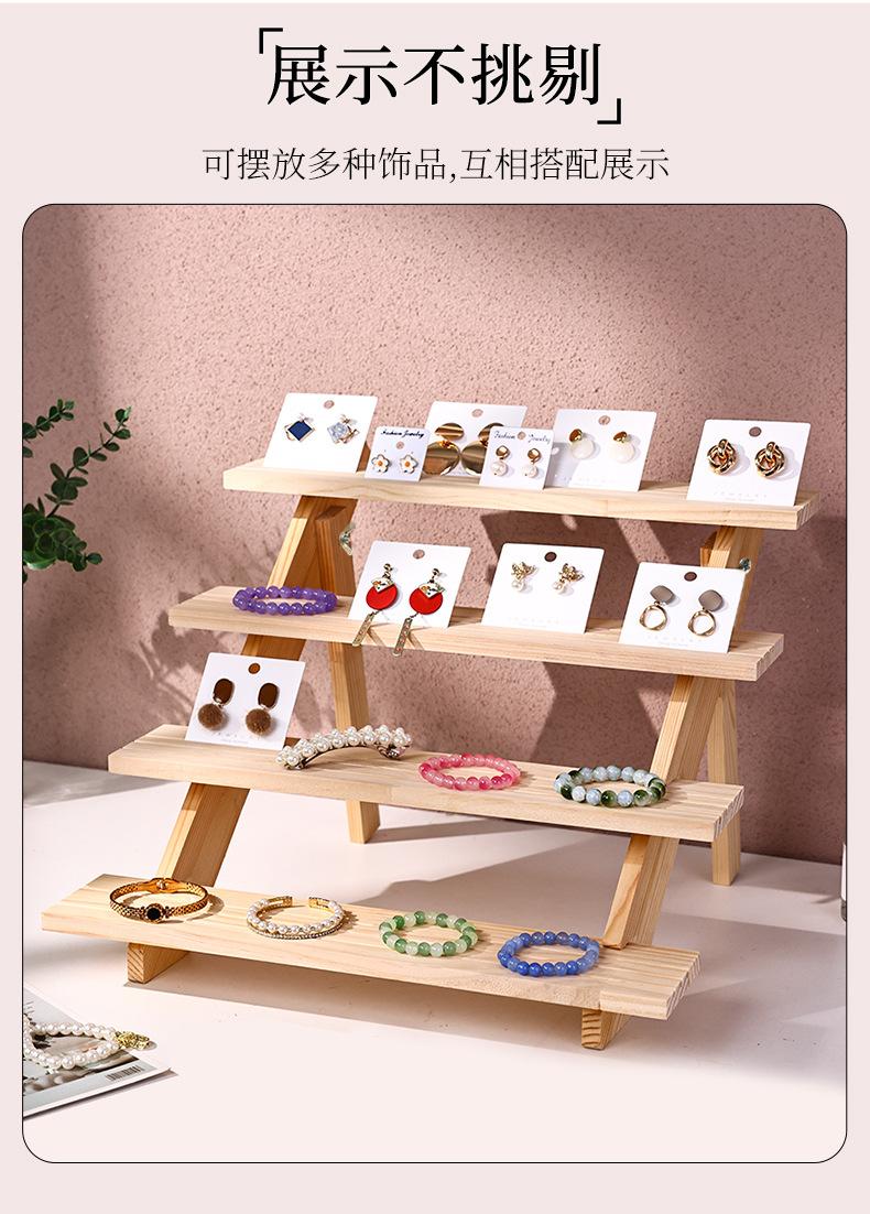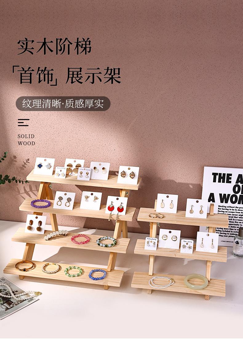 Exhibidor de Joyería Madera Maciza de Escritorio Aretes Exhibidor Escalonado para Joyería Pulseras Aretes para Puestos