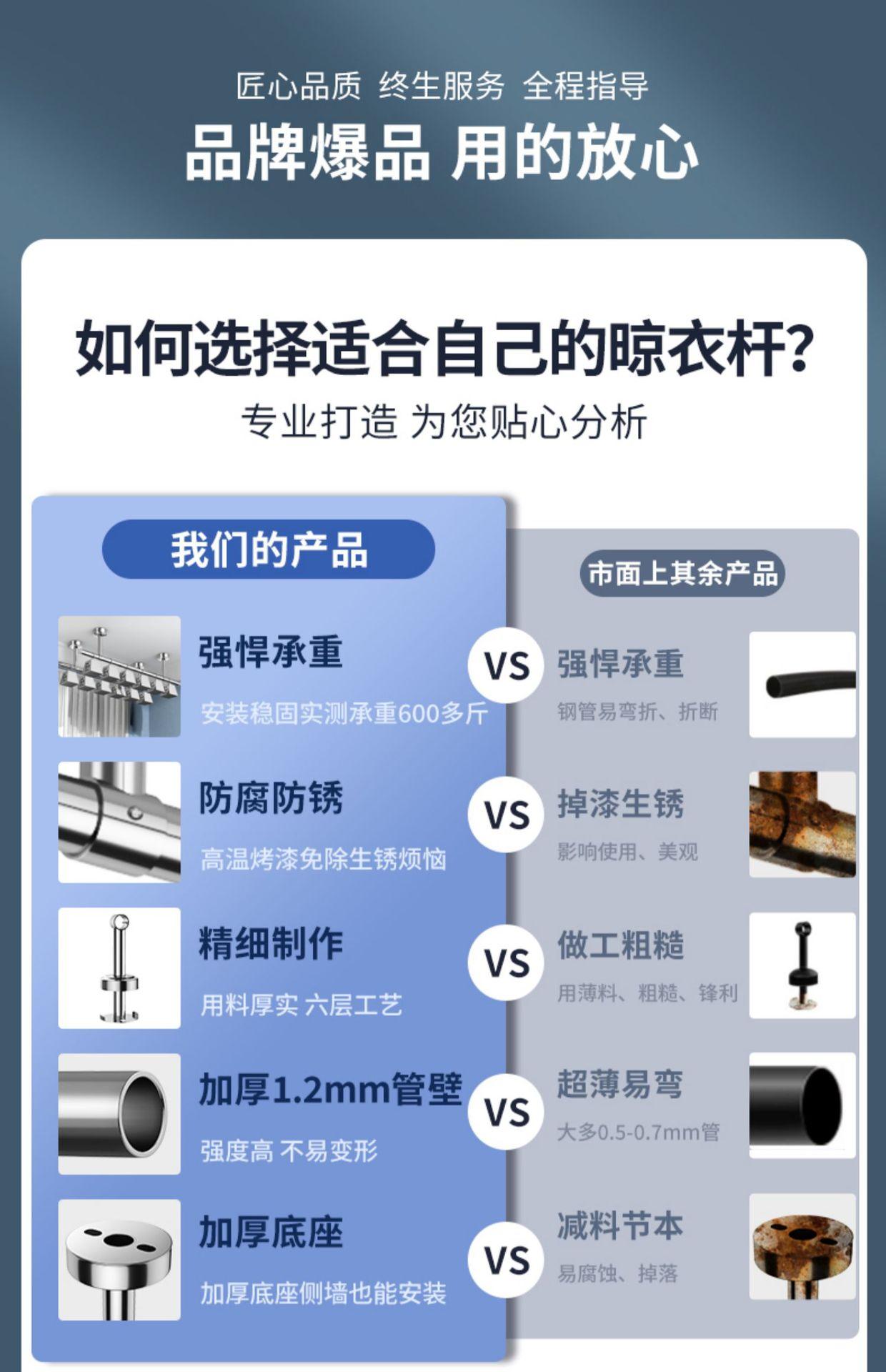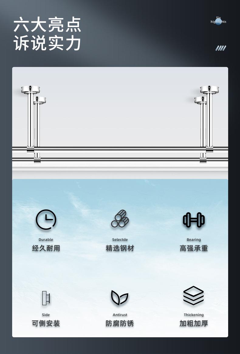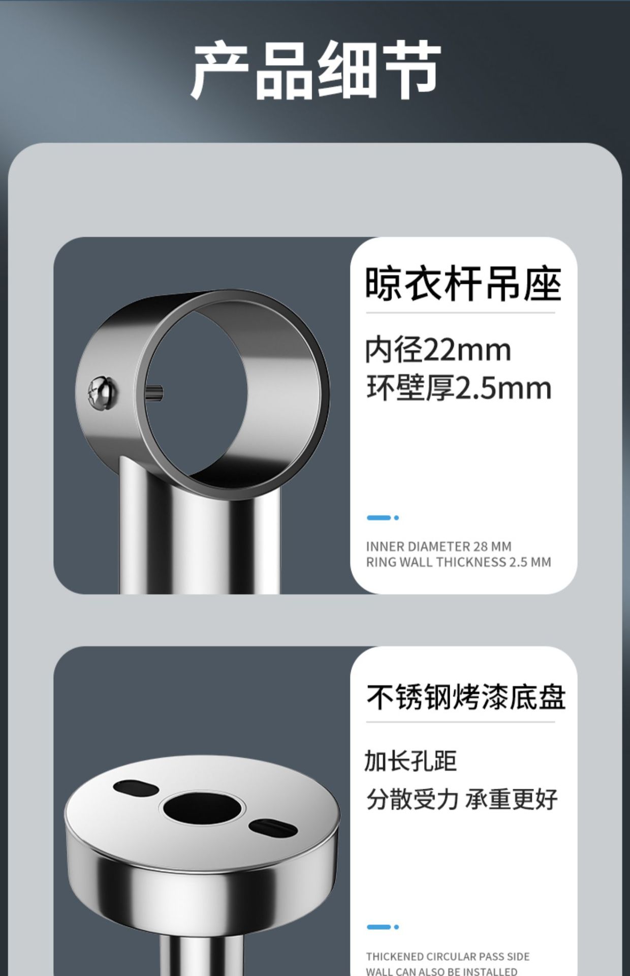 Tendedero de acero inoxidable para el hogar, barra fija para colgar ropa, para balcón, para interior