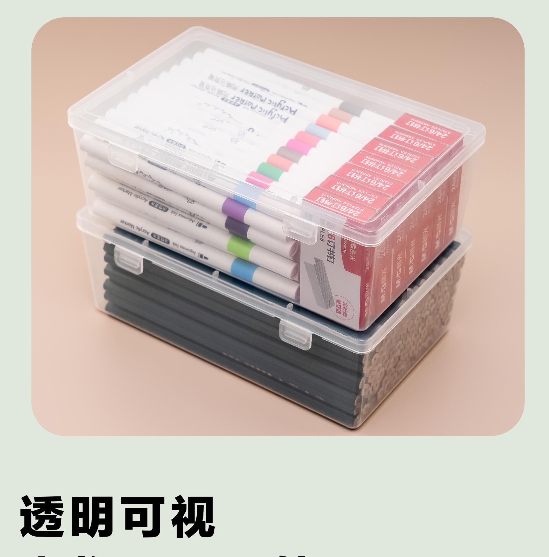 Caja de plástico transparente de gran capacidad para papelería, estuche para lápices Sketchup y pinceles para estudiantes, caja de papelería, caja de almacenamiento apilable