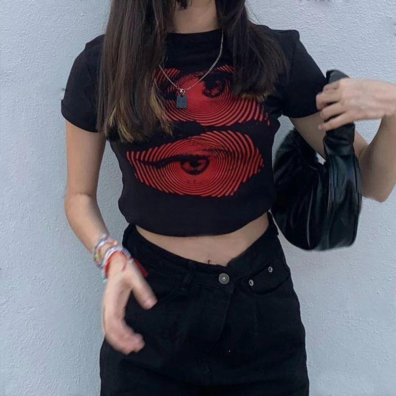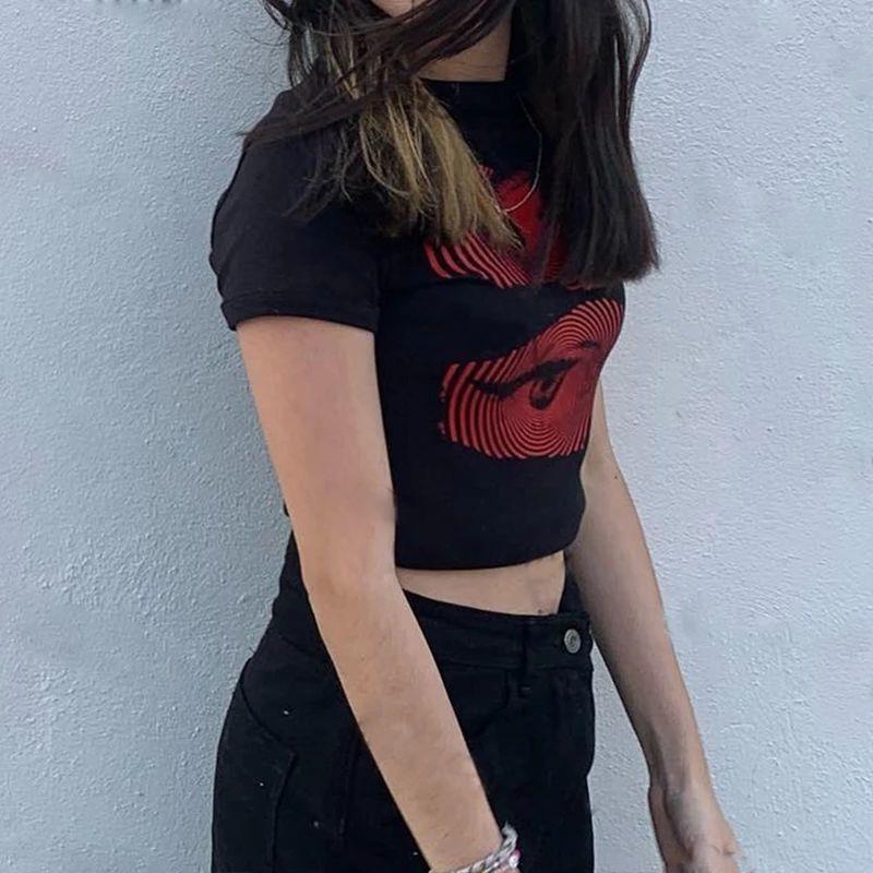 Nueva ropa de verano para mujer, estilo ins europeo y americano, diseño de impresión DIY, camiseta corta de moda personalizada