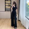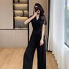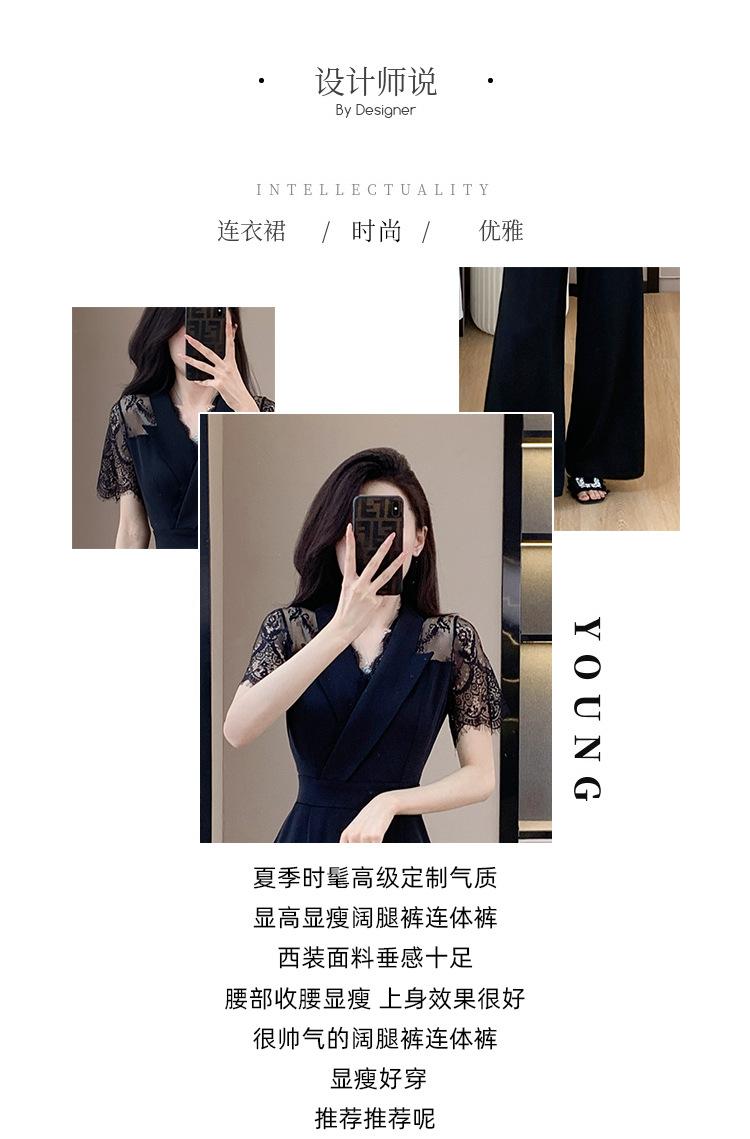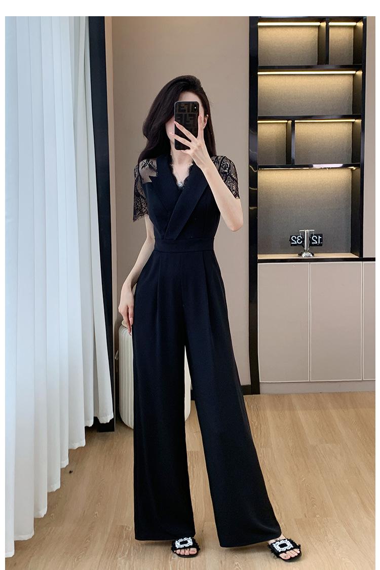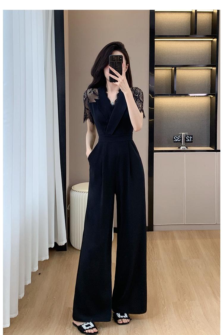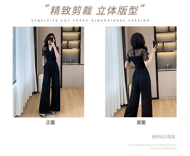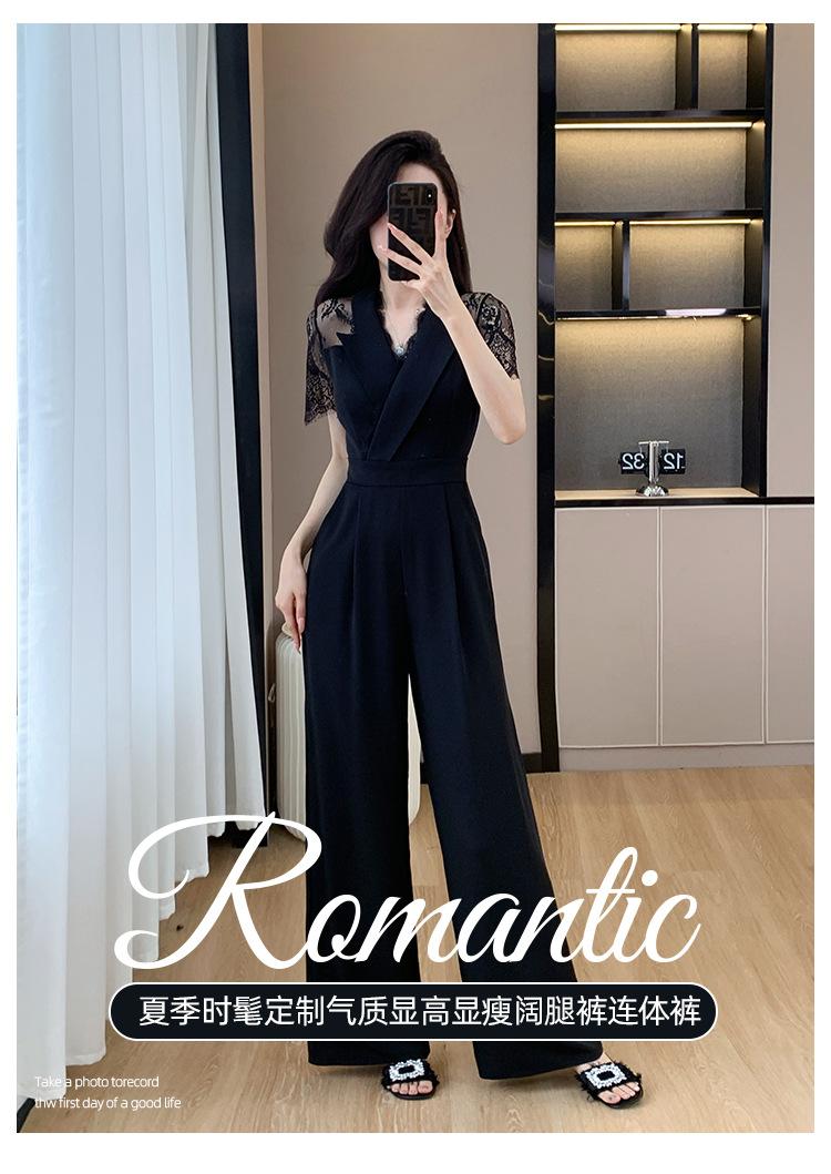 Pantalones Estilo Leng Yujie 2025 para Mujer de Verano Manga Corta Cintura Alta Encaje Costuras Calados Pantalones Rectos