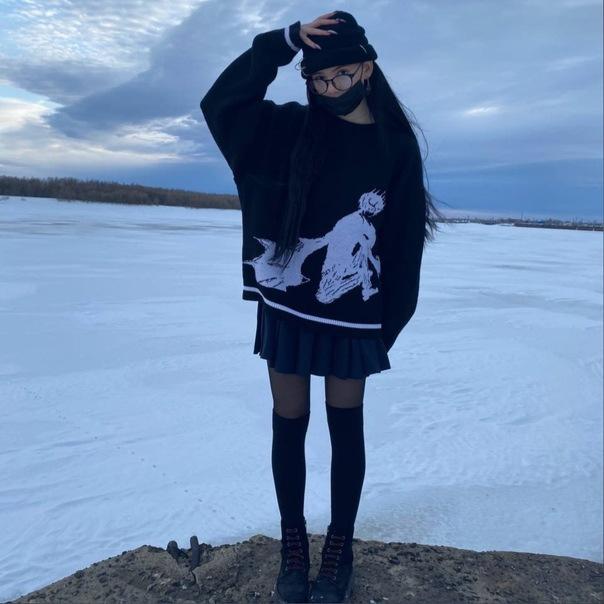 Suéter de punto estilo hip hop streetwear para mujer, otoño e invierno, 2023, estampado gótico oscuro, punk