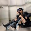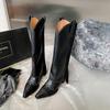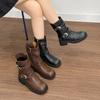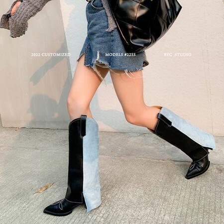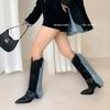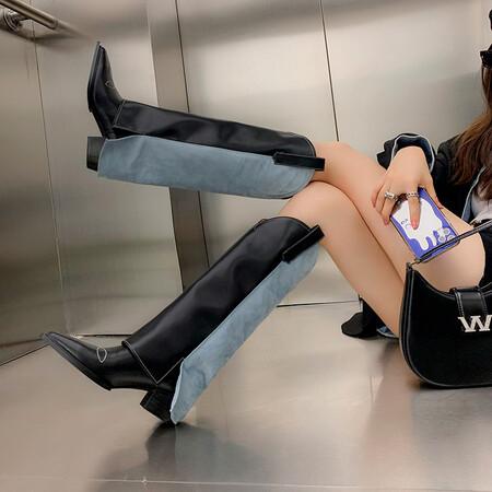 Botas largas Yingmeier de moda 2022, botas de moto negras y azules de tacón medio, botas de moda para mujer.