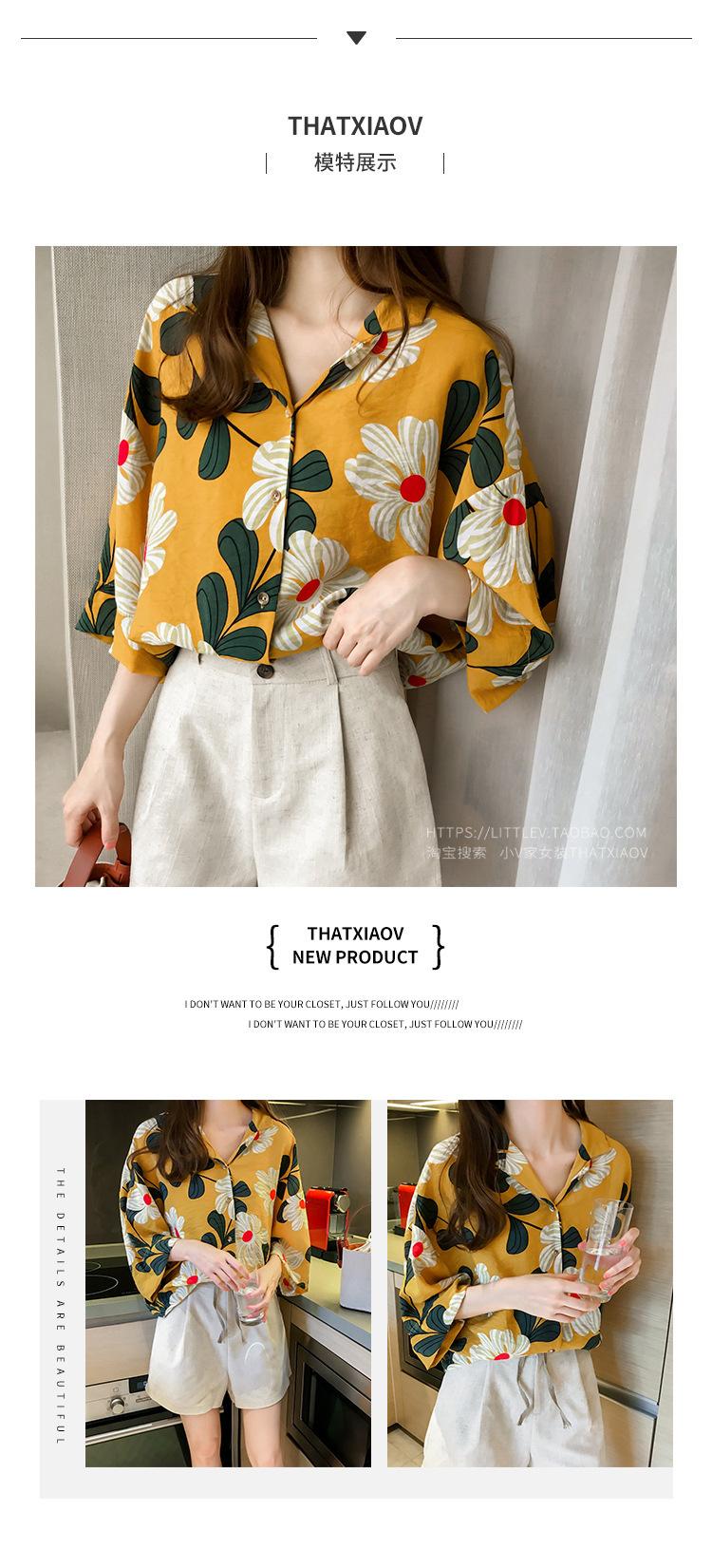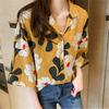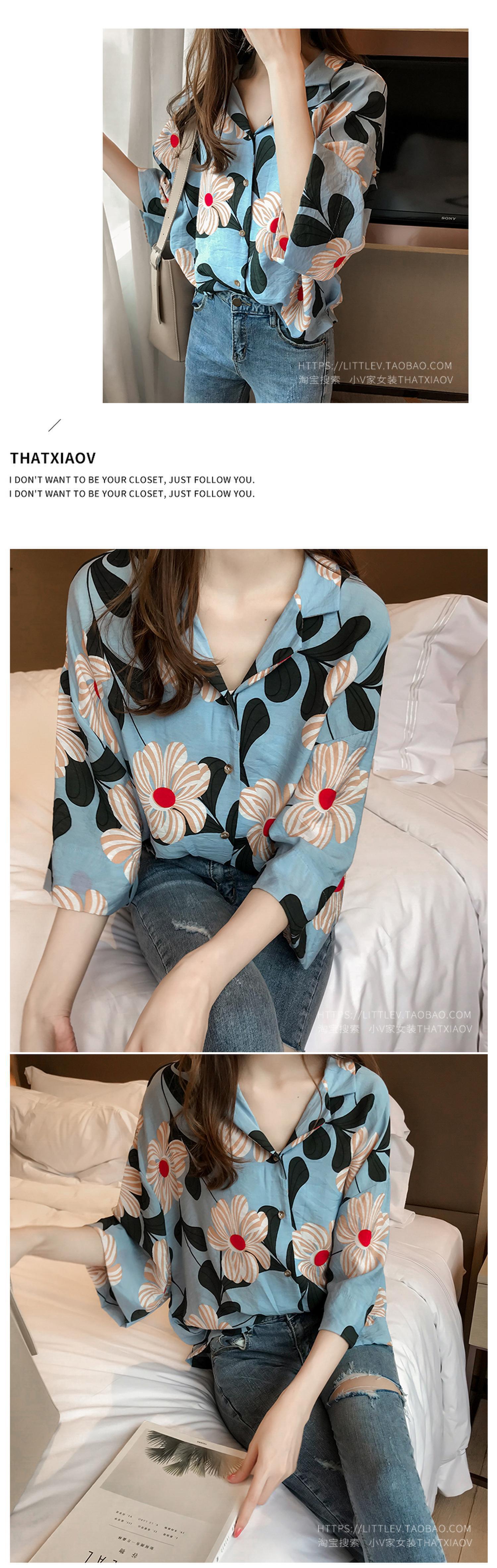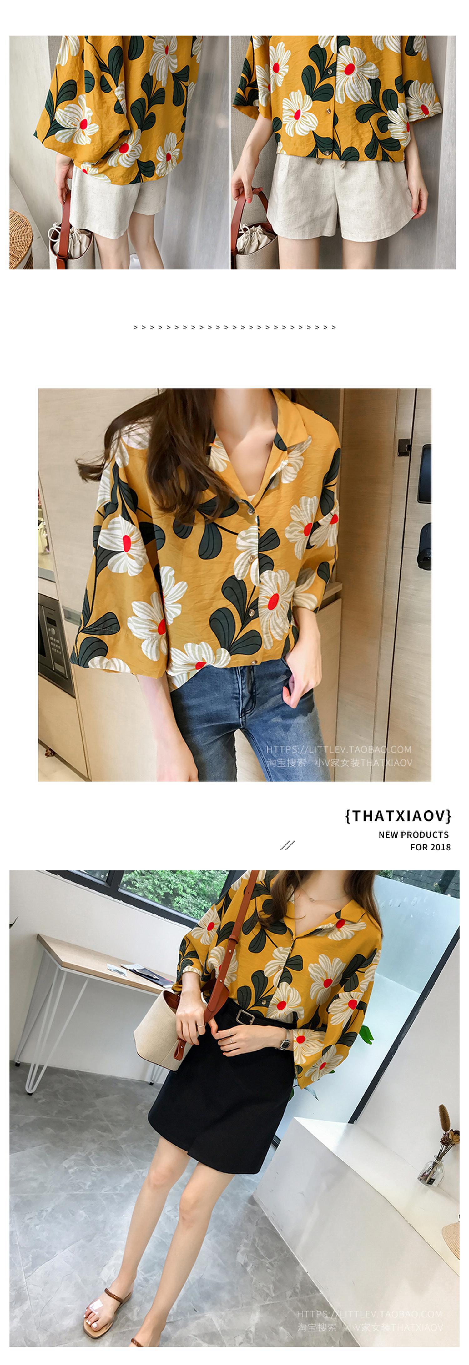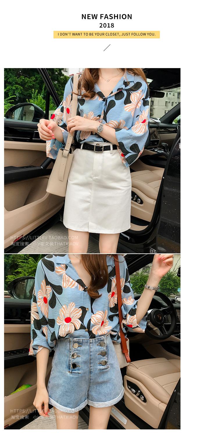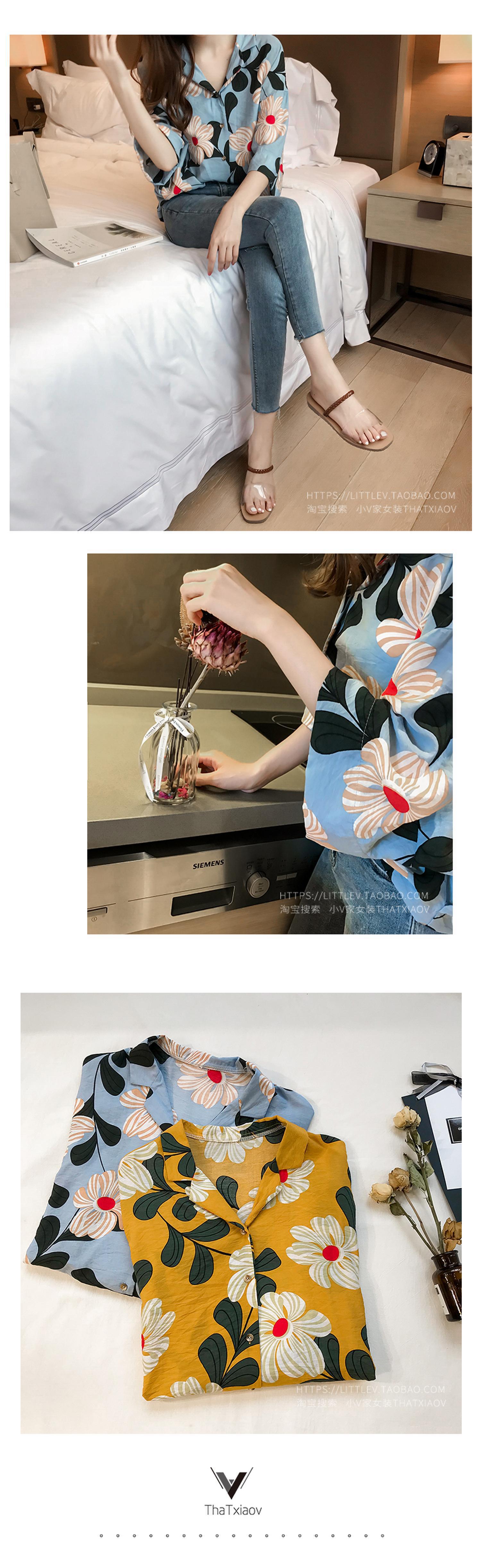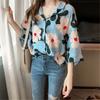 Camisa elegante de verano de estilo coreano con cuello en V y manga media para mujer, fresca, a la moda, con estampado floral dulce y antisol, fina