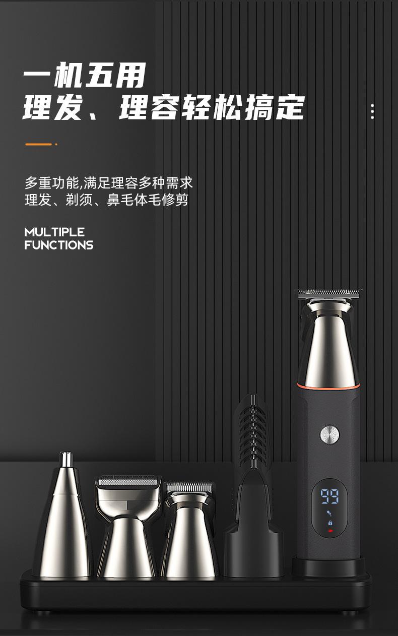 Compra Nueva cortadora de pelo eléctrica, afeitadora doméstica, recargable, lavadora, cortadora eléctrica, pantalla digital, traje cinco en uno al por mayor en Joom.pro
