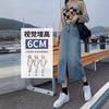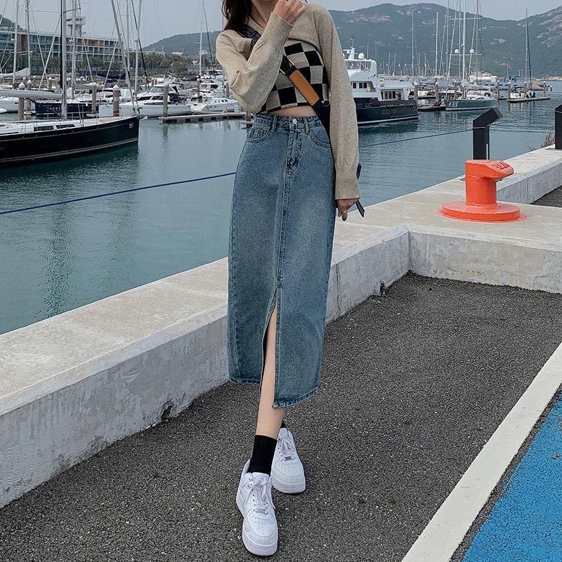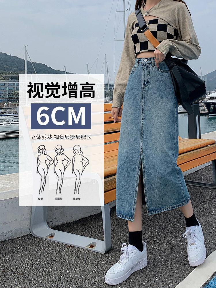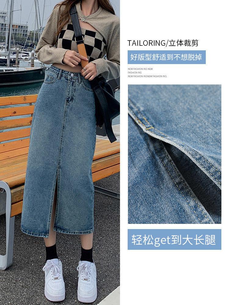 Falda dividida para mujer, verano 2024, nuevo estilo, cintura alta pequeña, en forma de A, longitud media, falda vaquera a la cadera