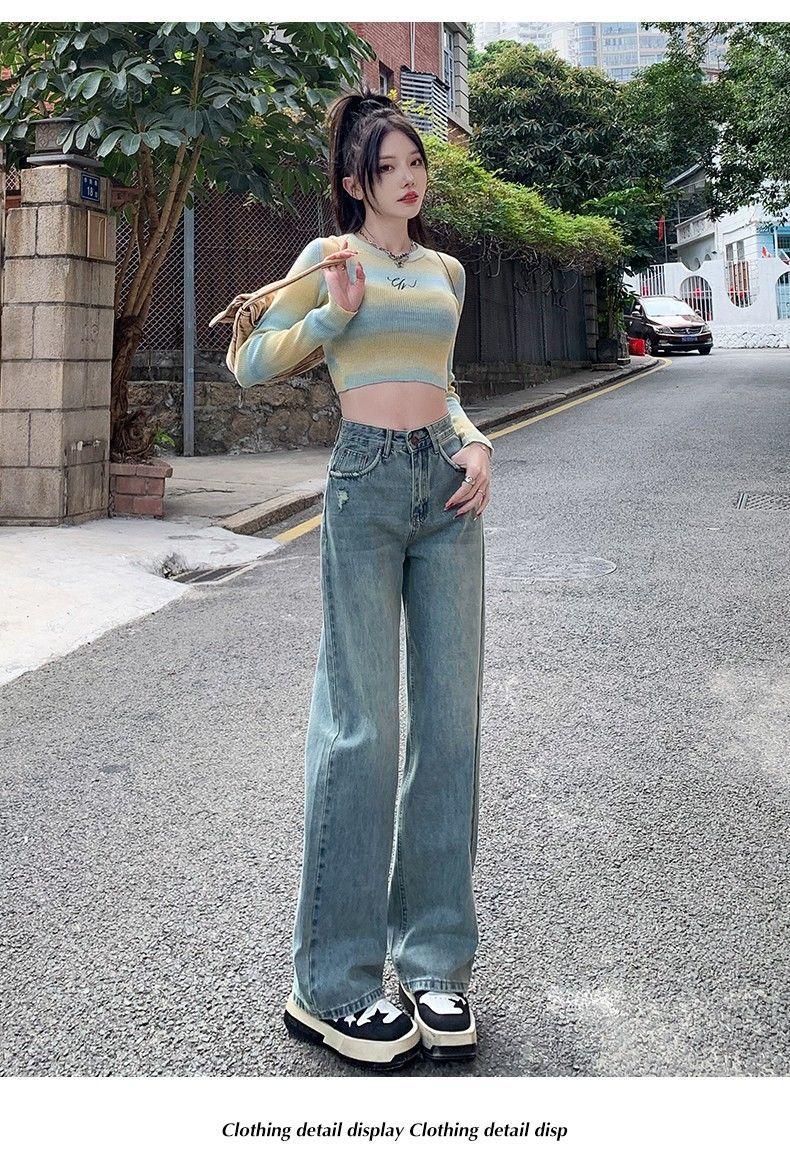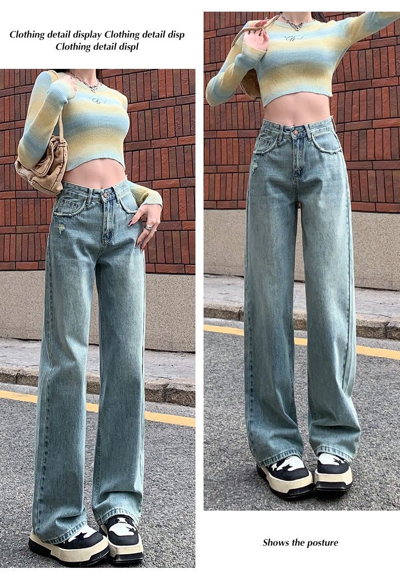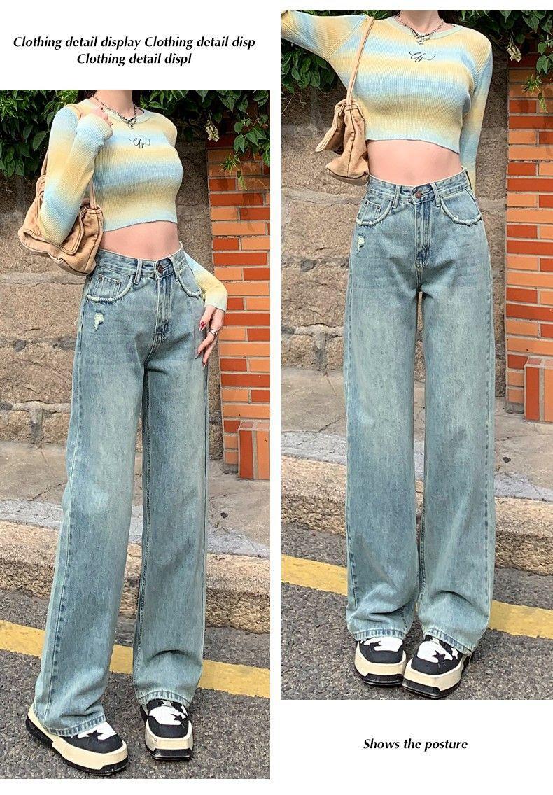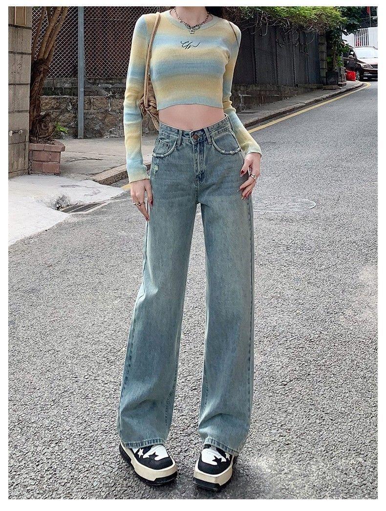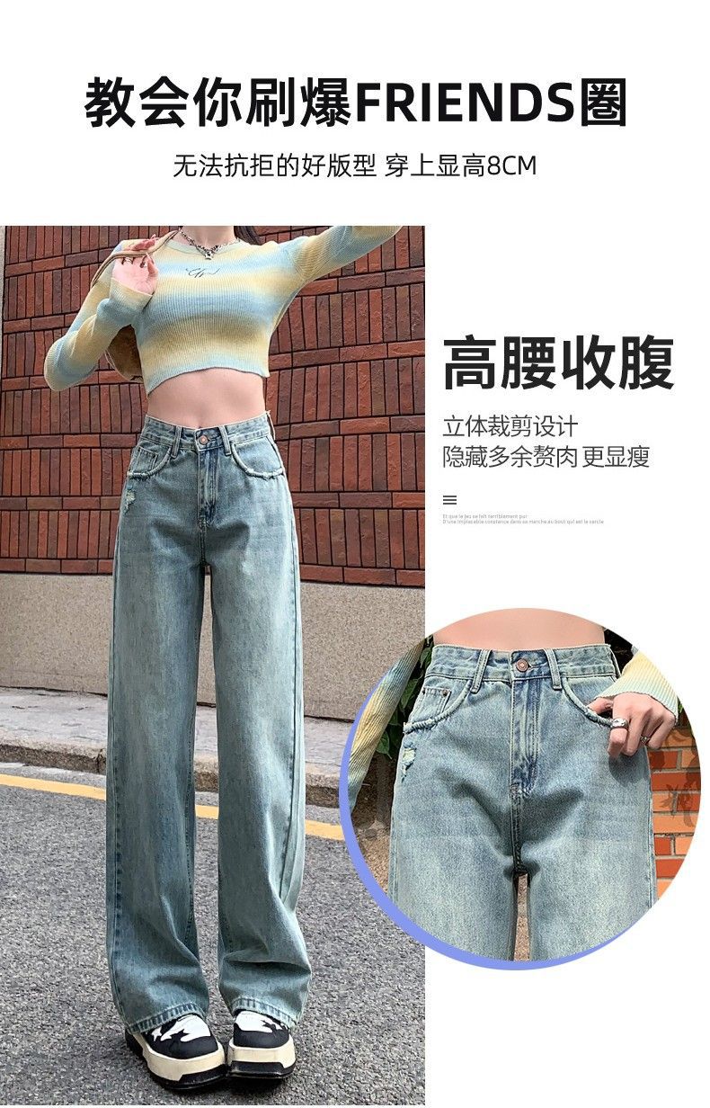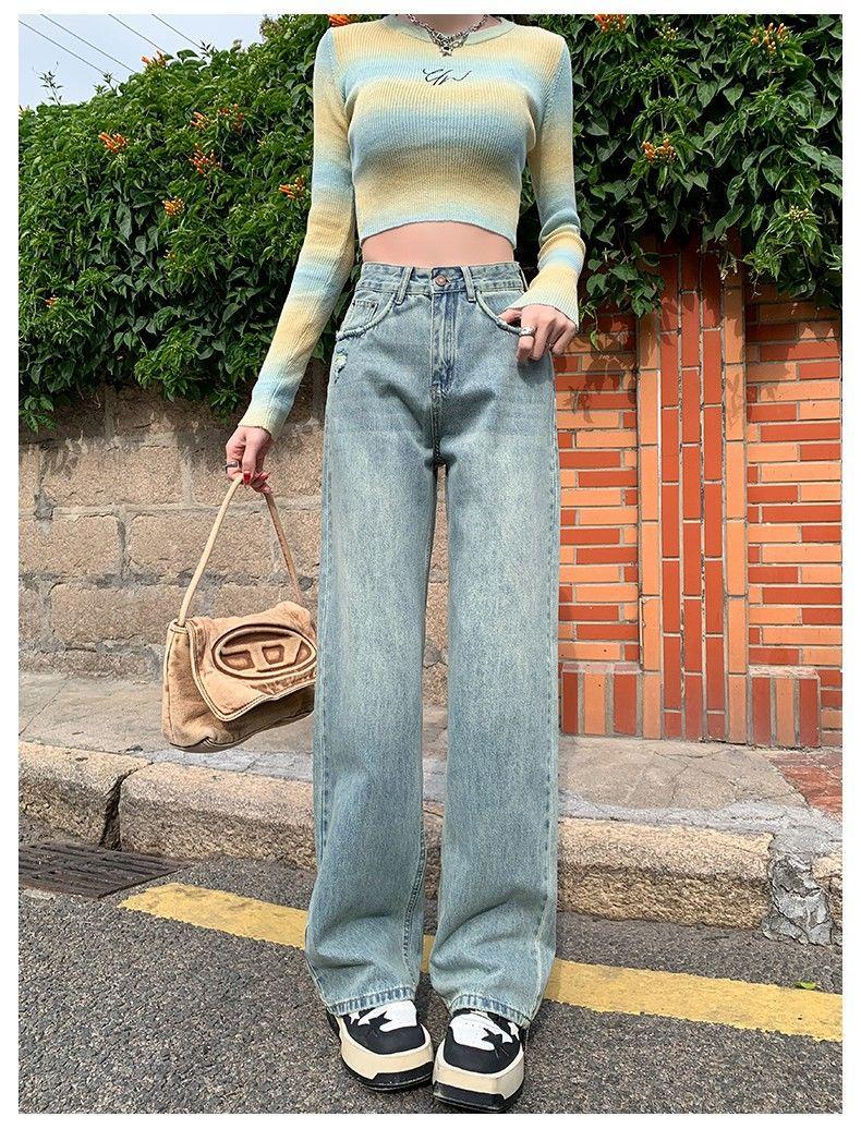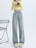 Vaqueros azul claro de pierna ancha y estrecha para mujer primavera y verano 2024 nuevo diseño de cintura alta Sense pantalones rectos primavera
