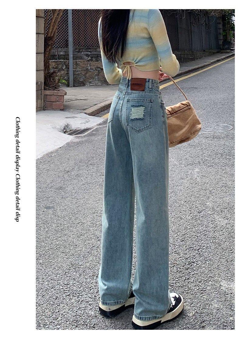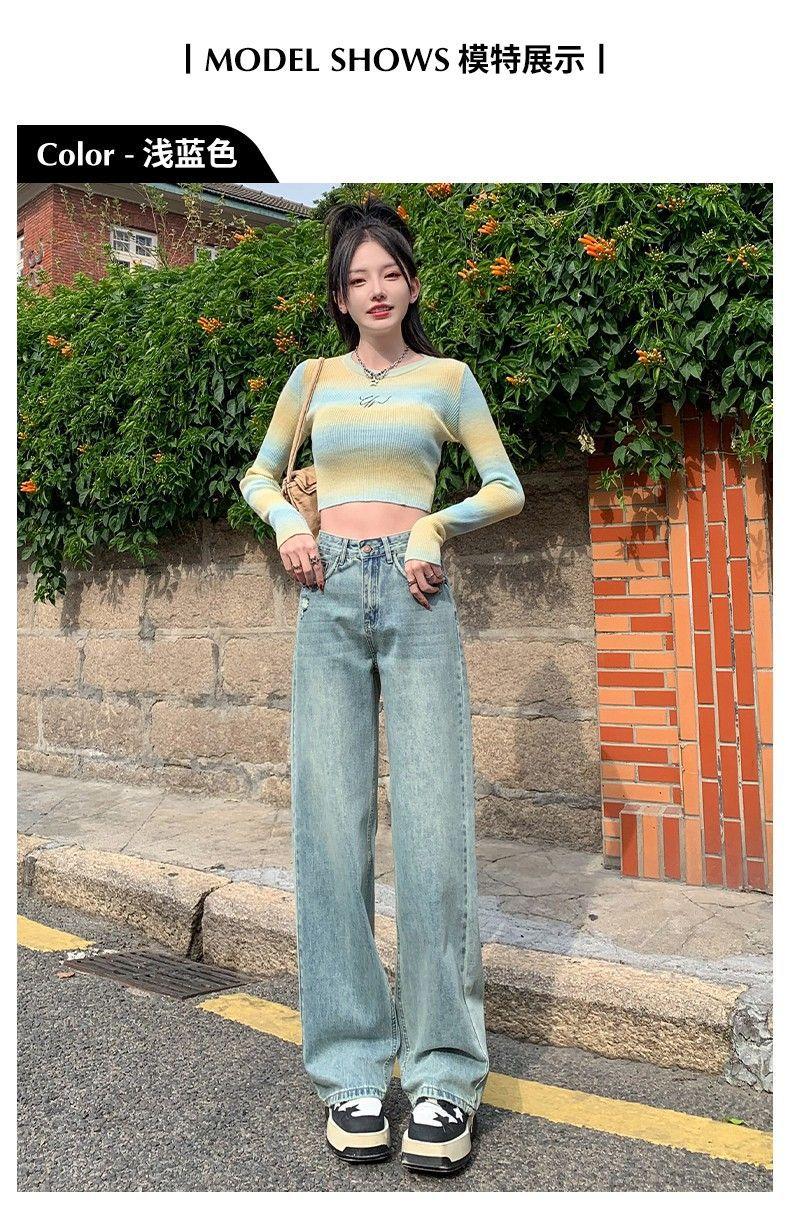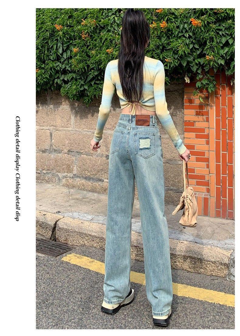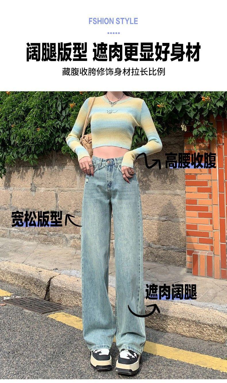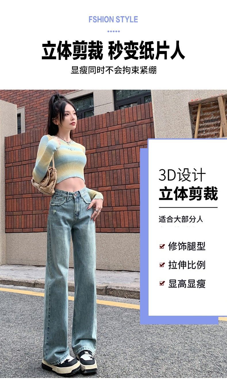 Vaqueros azul claro de pierna ancha y estrecha para mujer primavera y verano 2024 nuevo diseño de cintura alta Sense pantalones rectos primavera