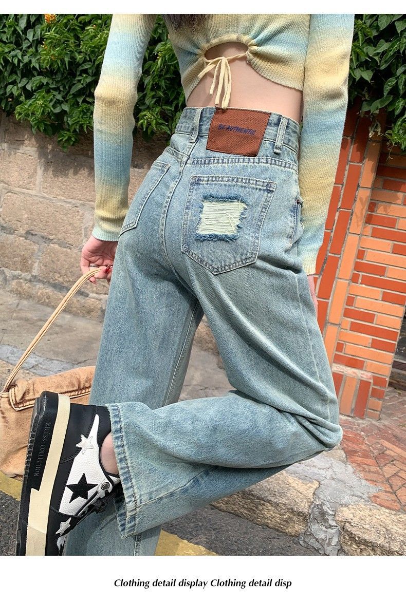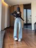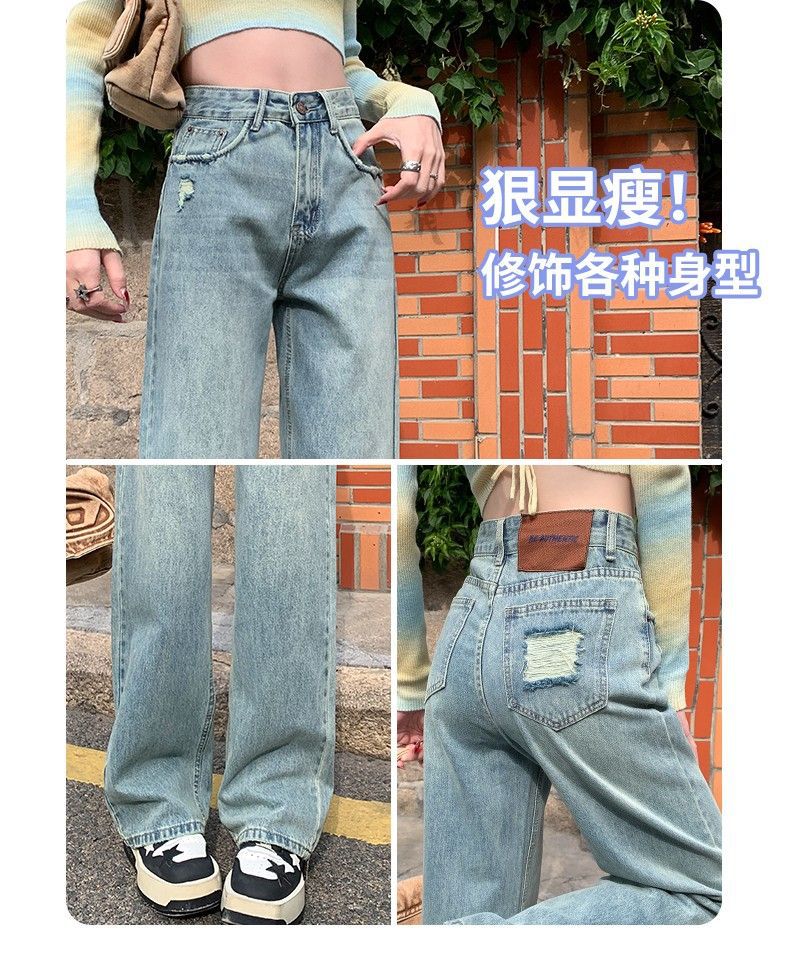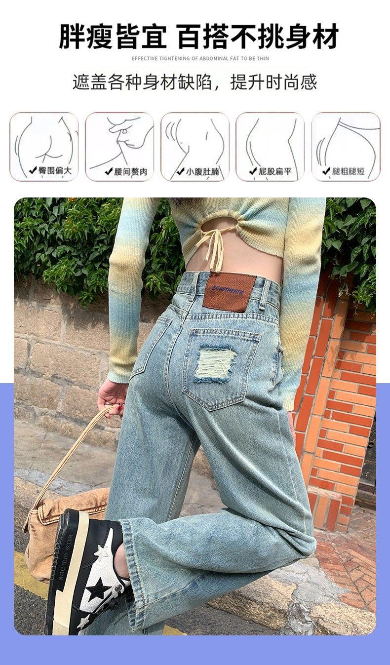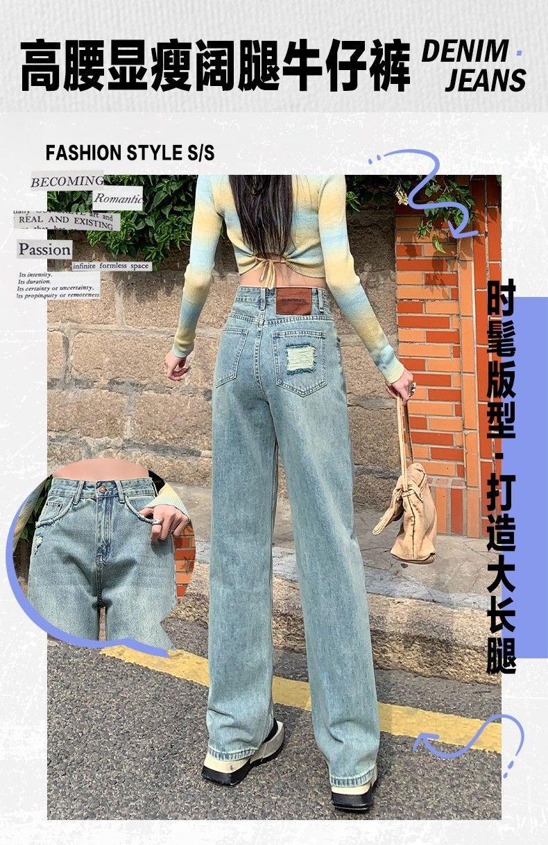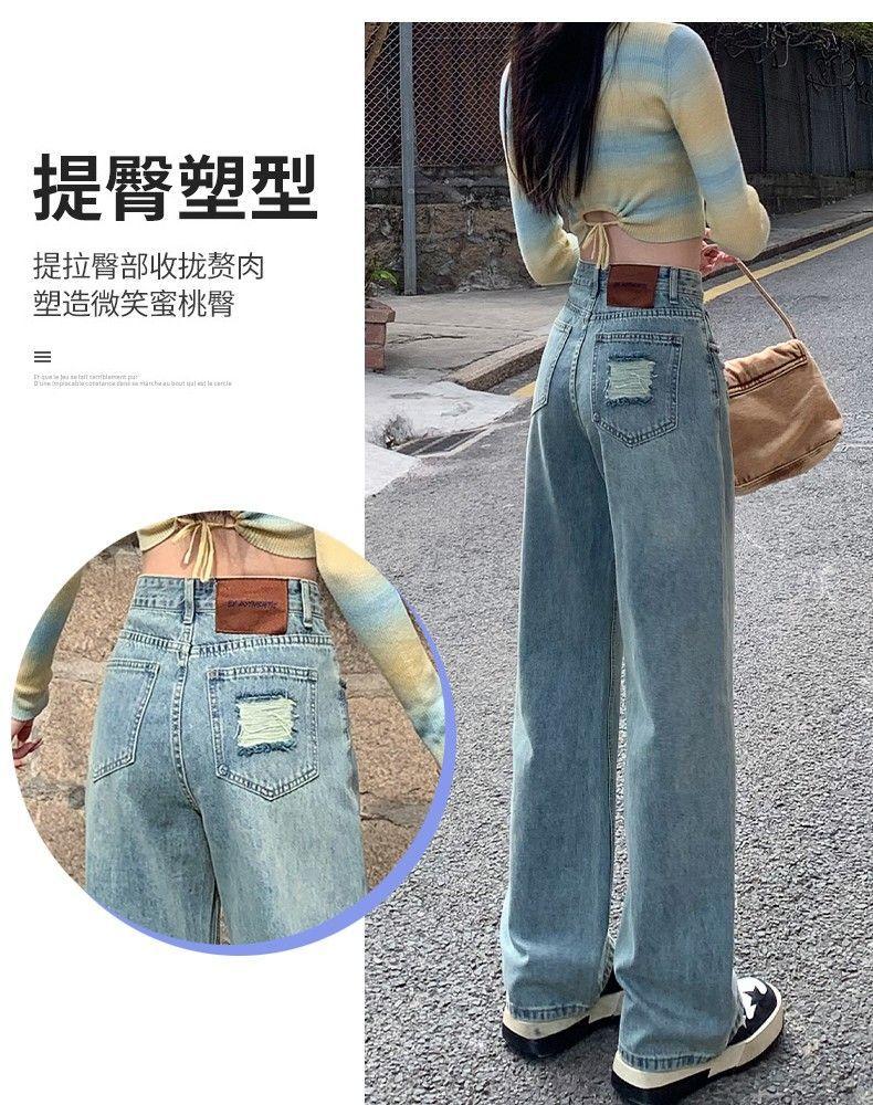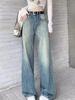 Vaqueros azul claro de pierna ancha y estrecha para mujer primavera y verano 2024 nuevo diseño de cintura alta Sense pantalones rectos primavera