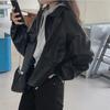 Chic Coreano Retro Estilo Hong Kong Solapa Cremallera Manga Larga Corta Ropa Exterior Versátil para Mujer 2025 Nueva Tendencia Top
