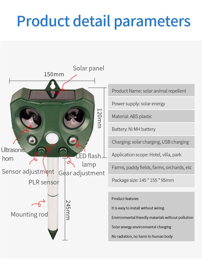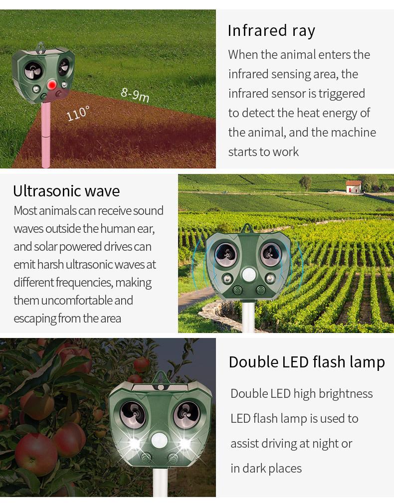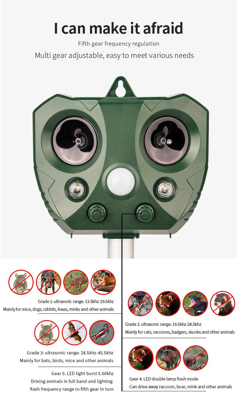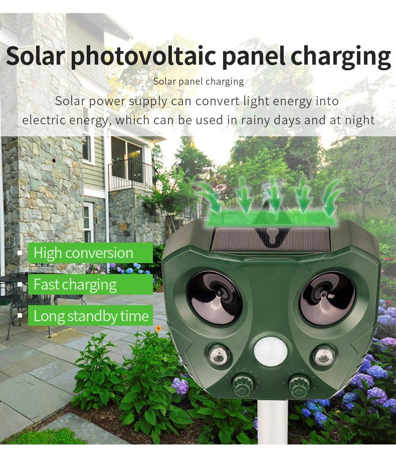 Amazon Explosiones Repelente Multifuncional de Animales LED Solar Ráfaga Repelente de Ratones Ultrasónico Repelente de Aves
