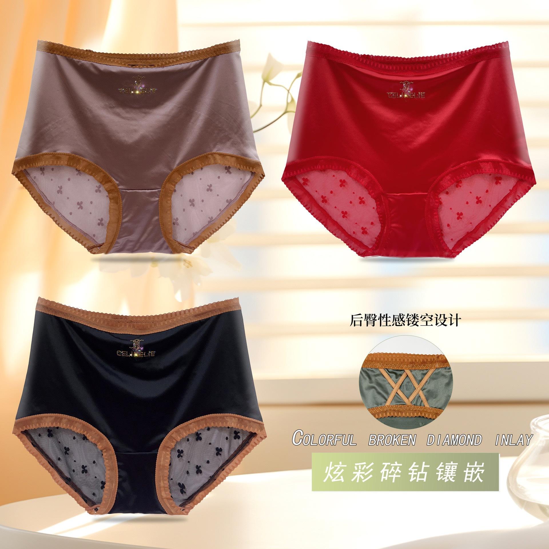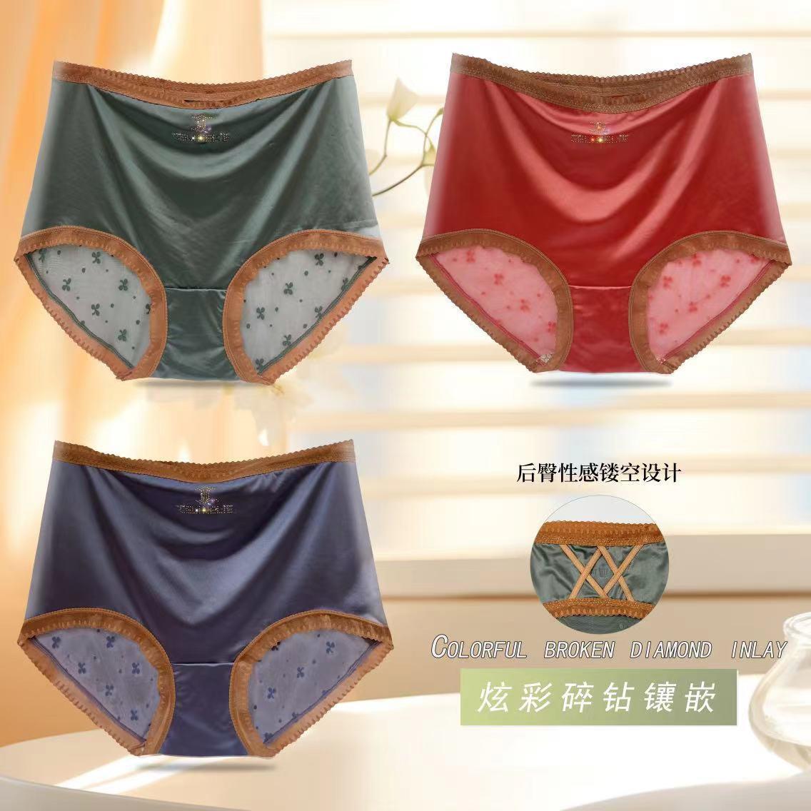 Wennu Nuevo talla grande satén calzones de cintura alta para mujer gorda mm200 kg hueco Melocotón Cadera