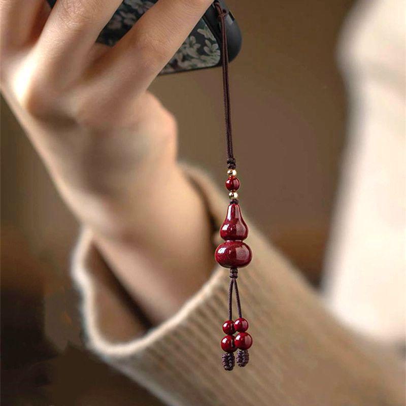 Colgante de cadena para teléfono móvil con calabaza Fulu de cinabrio y arena de oro púrpura para hombres y mujeres, colgante pequeño creativo personalizado, colgante para bolso.