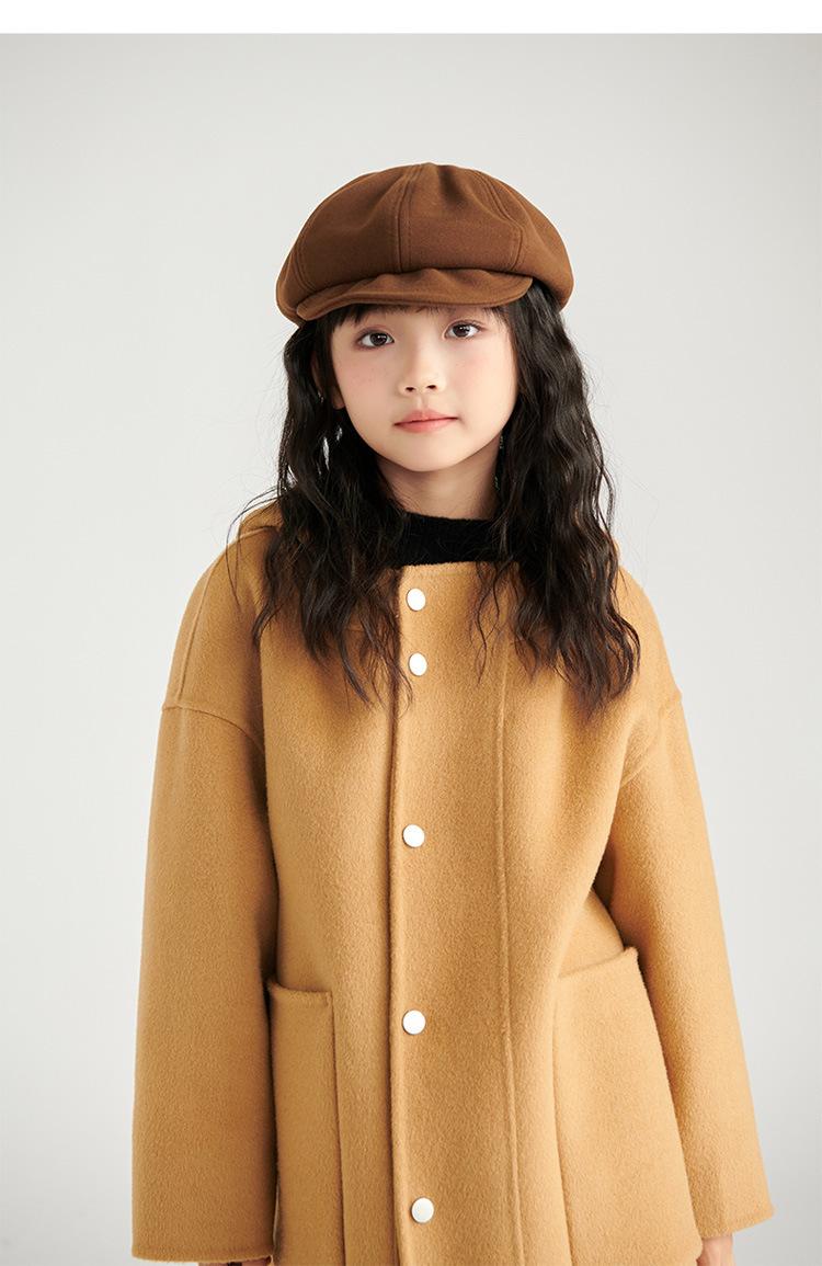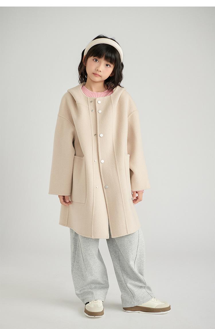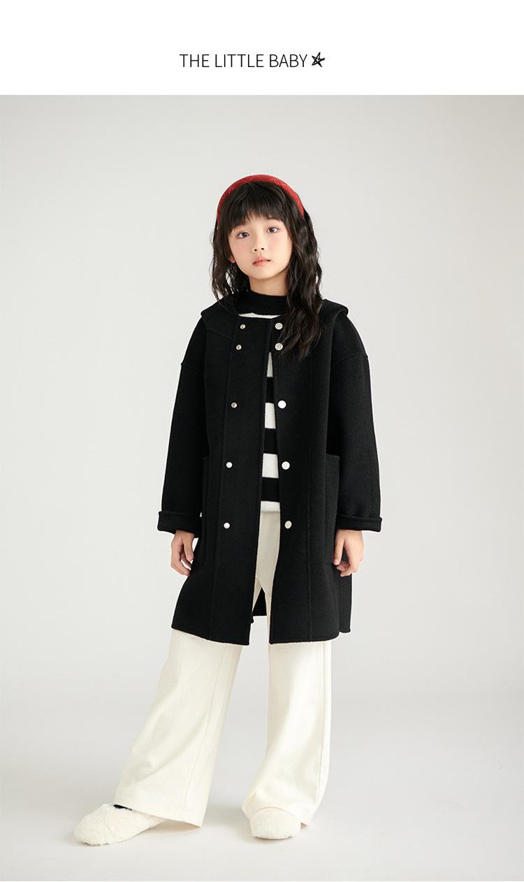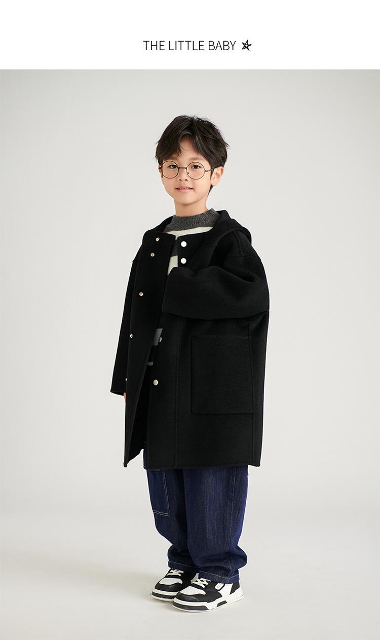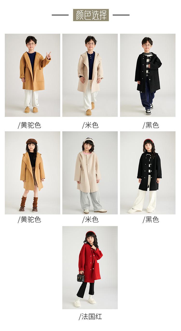 Abrigo de lana de doble cara para niños y niñas, otoño e invierno 2024, nuevo abrigo de lana 100% con capucha para niños, largo