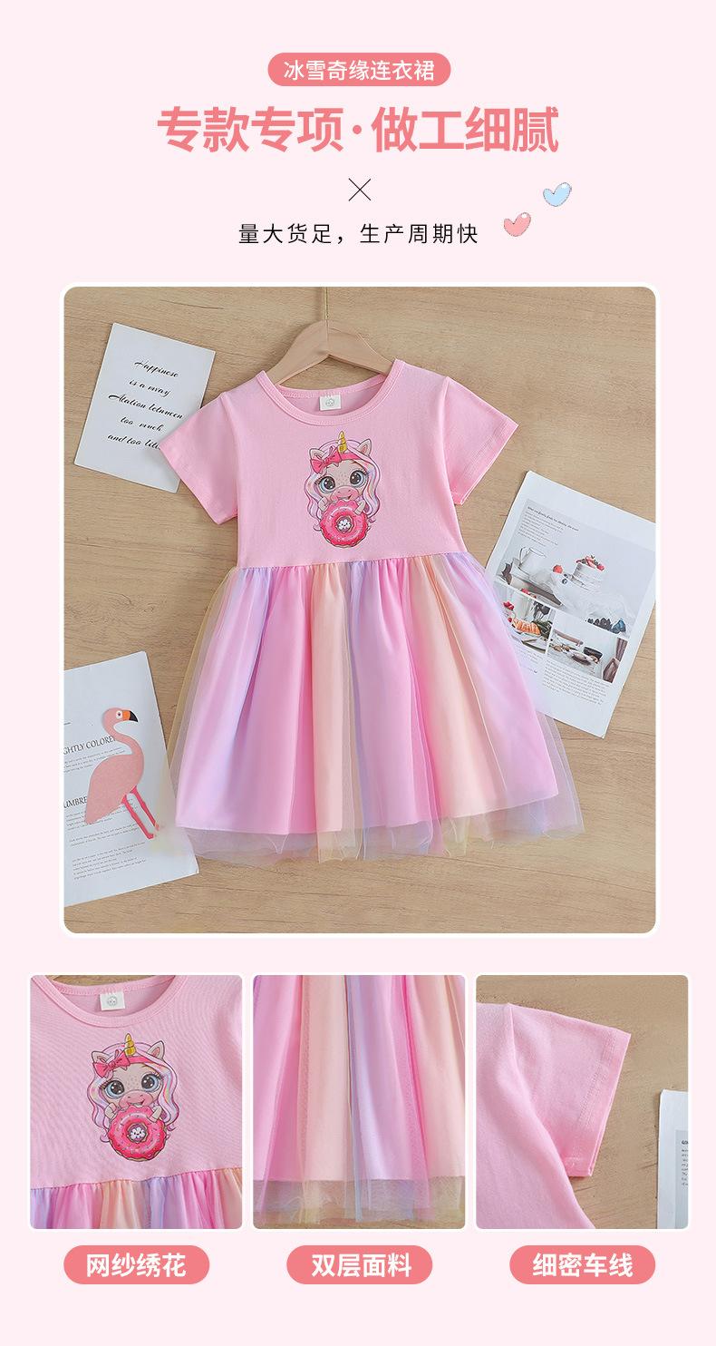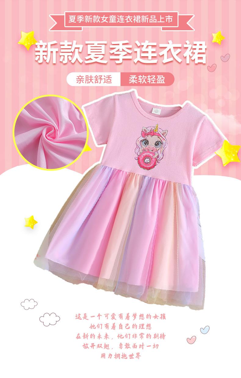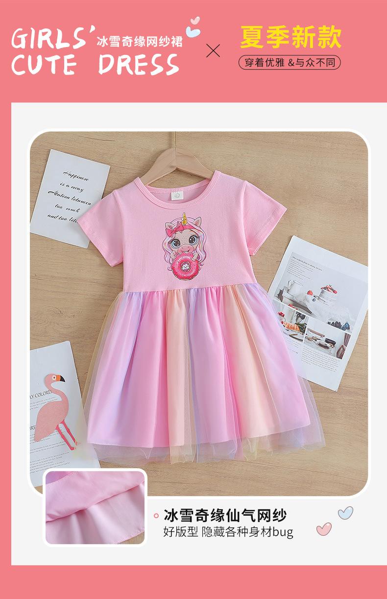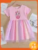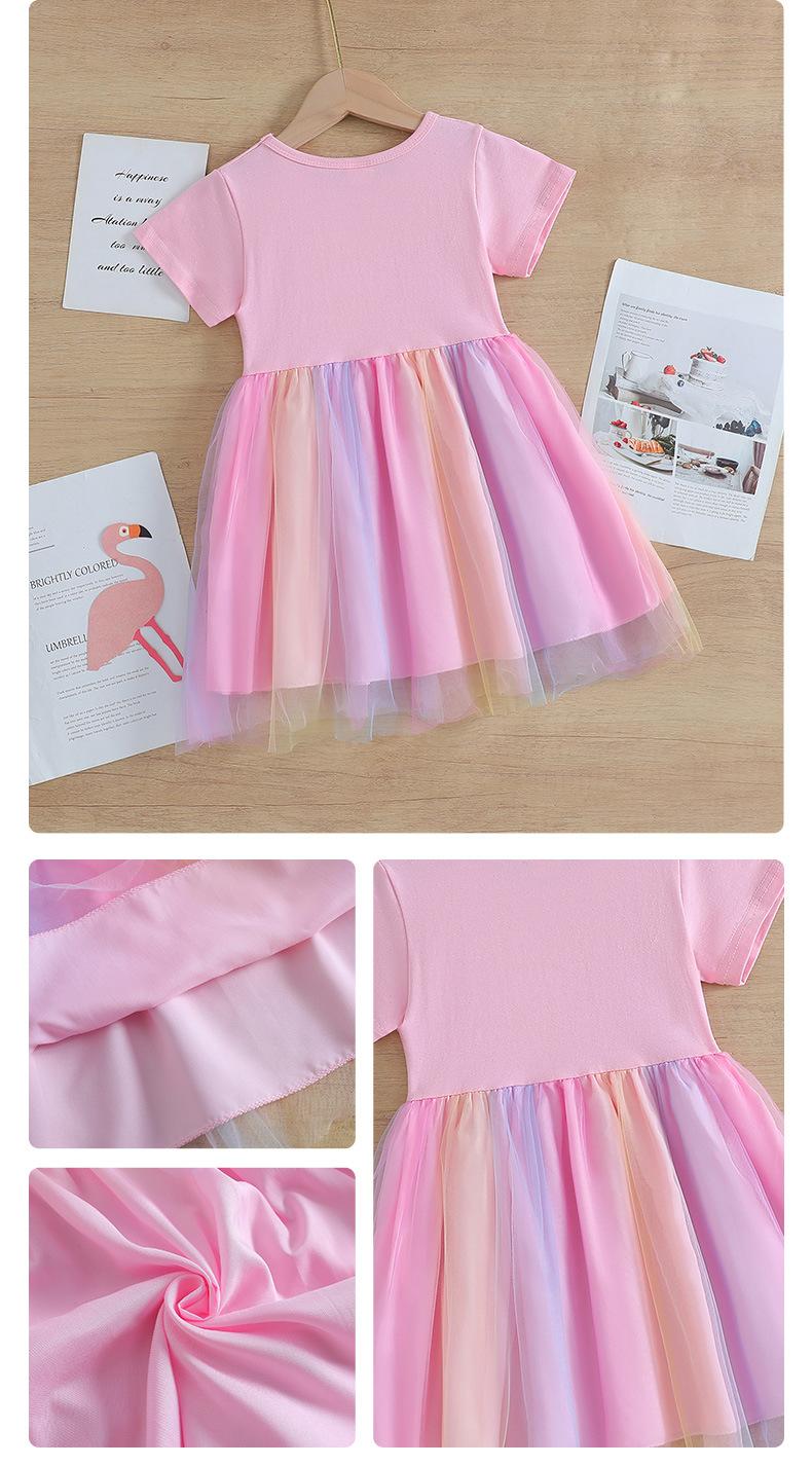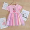 Vestido de Niña Manga Corta Bebé de Tres Años Vestido de Verano para Niña Vestidito Cumpleaños Malla Arcoíris Vestido de Princesa