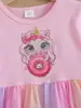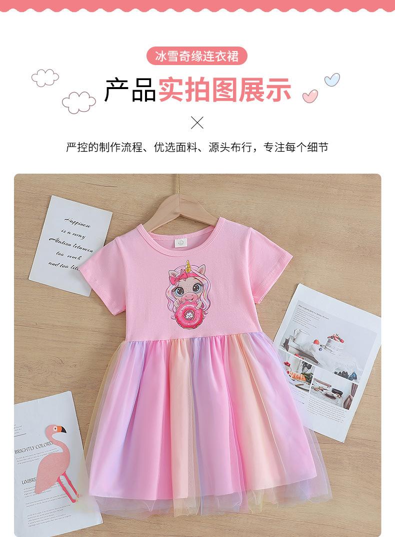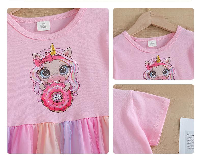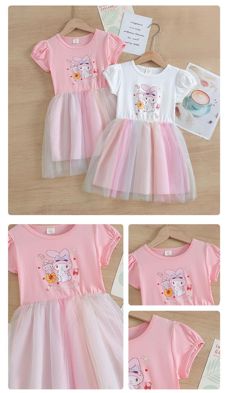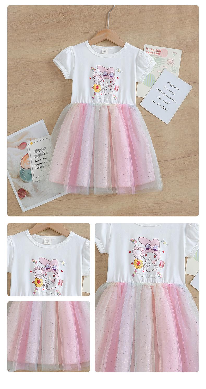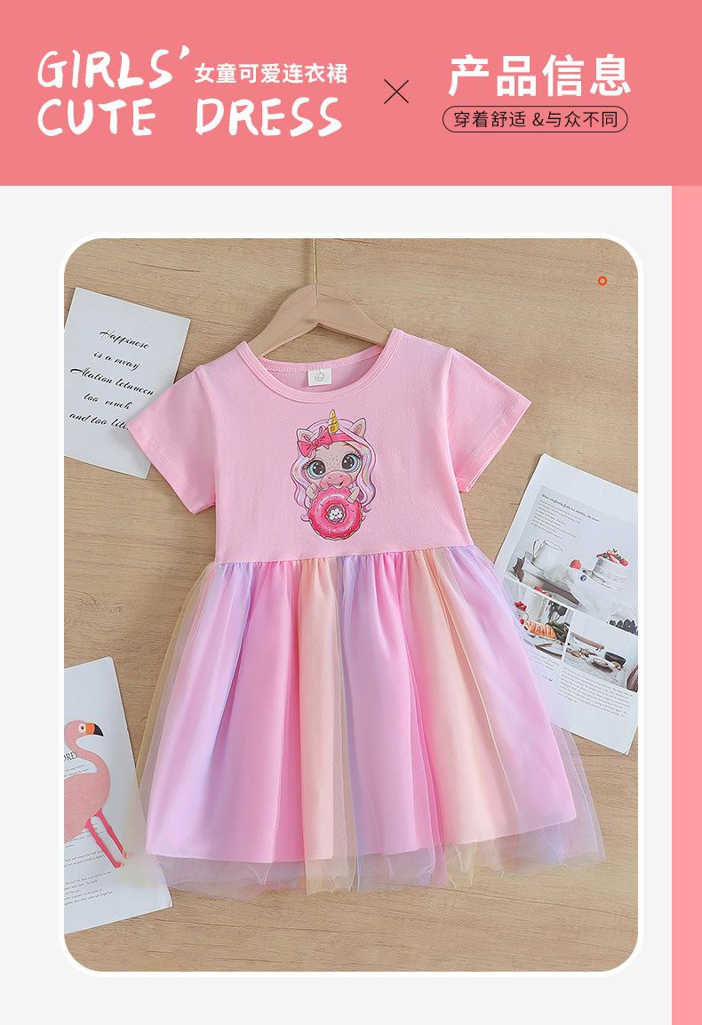 Vestido de Niña Manga Corta Bebé de Tres Años Vestido de Verano para Niña Vestidito Cumpleaños Malla Arcoíris Vestido de Princesa
