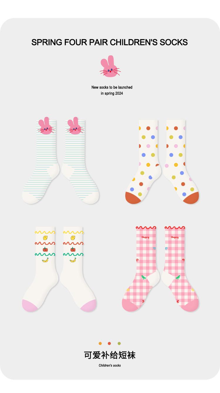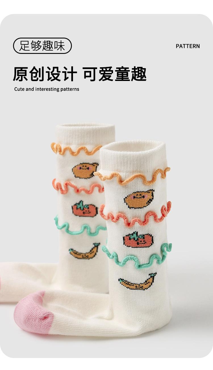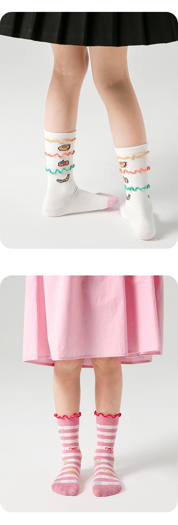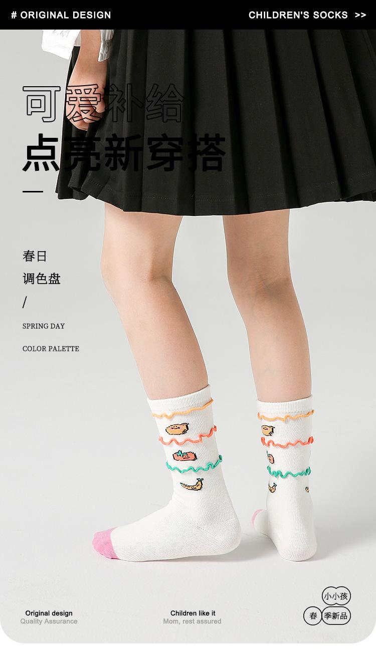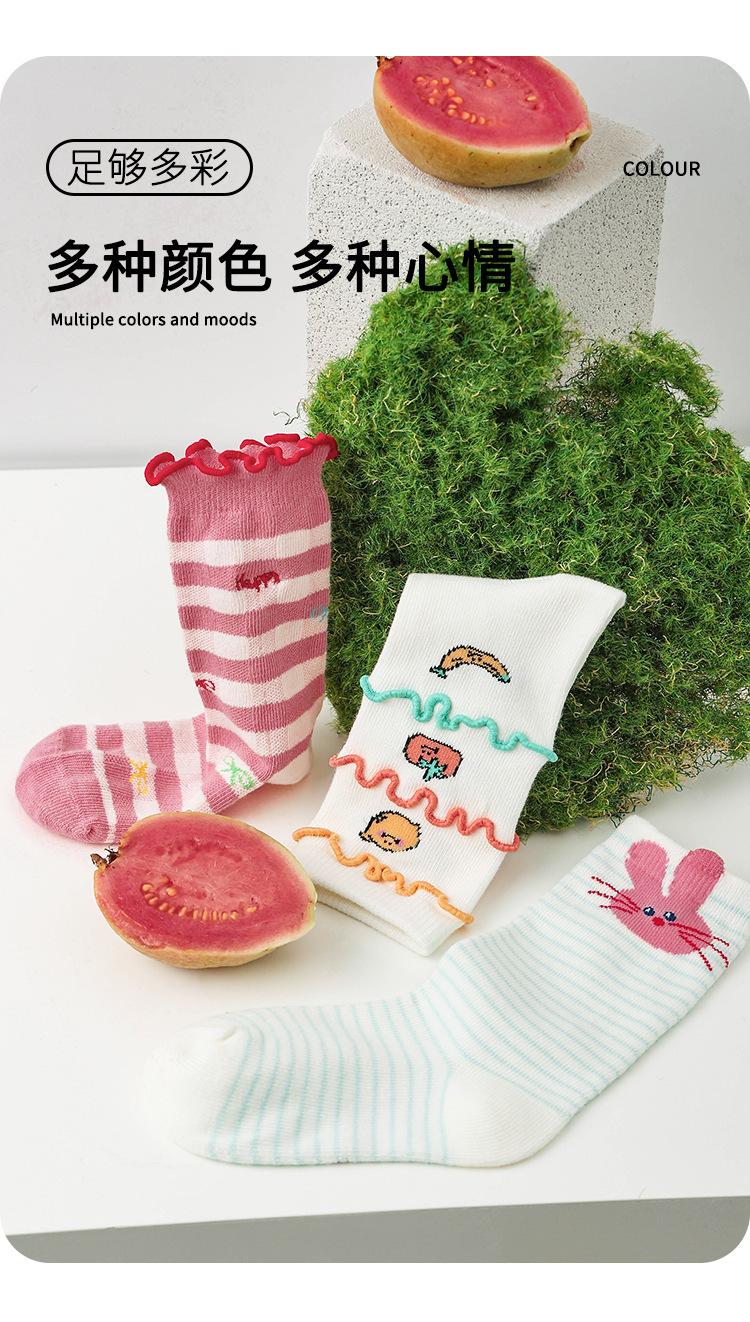 1623 calcetines para niños al por mayor 2024 primavera dibujos animados a rayas bebé media pantorrilla calcetines de algodón sin costuras encaje calcetines de niña