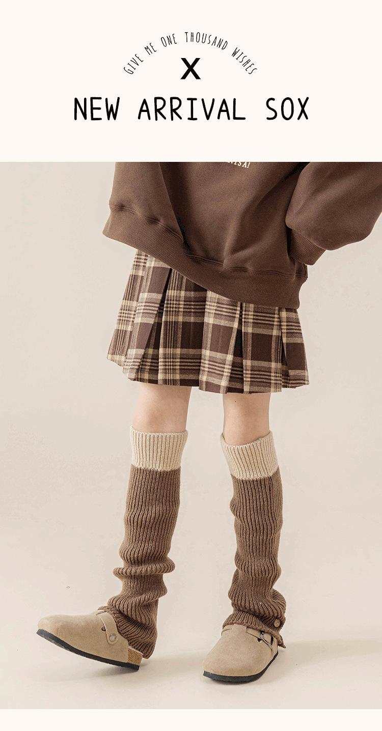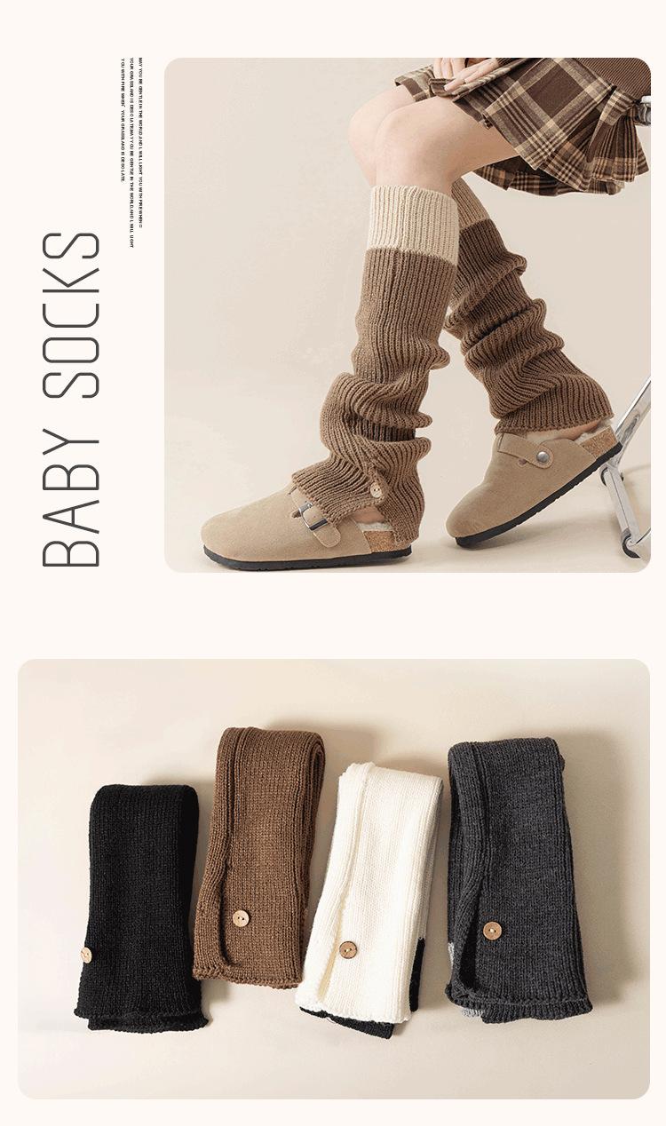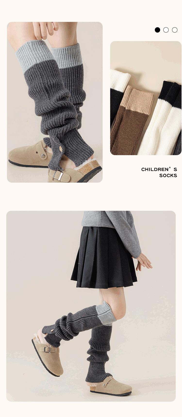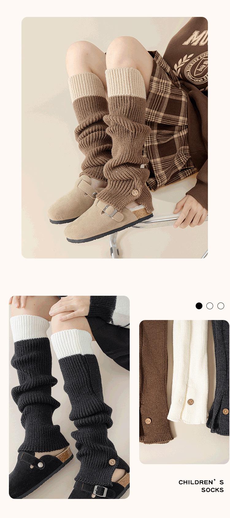Calcetines para niñas, calcetines de pila a juego de colores, vintage, otoño e invierno, marrón, con botones divididos, de punto, largos y cálidos, para cubrir las piernas.