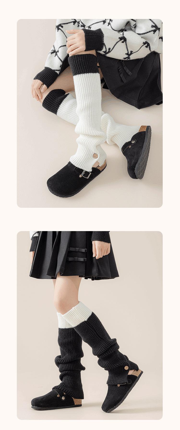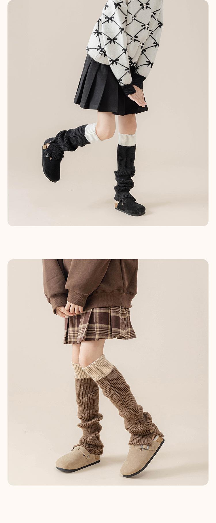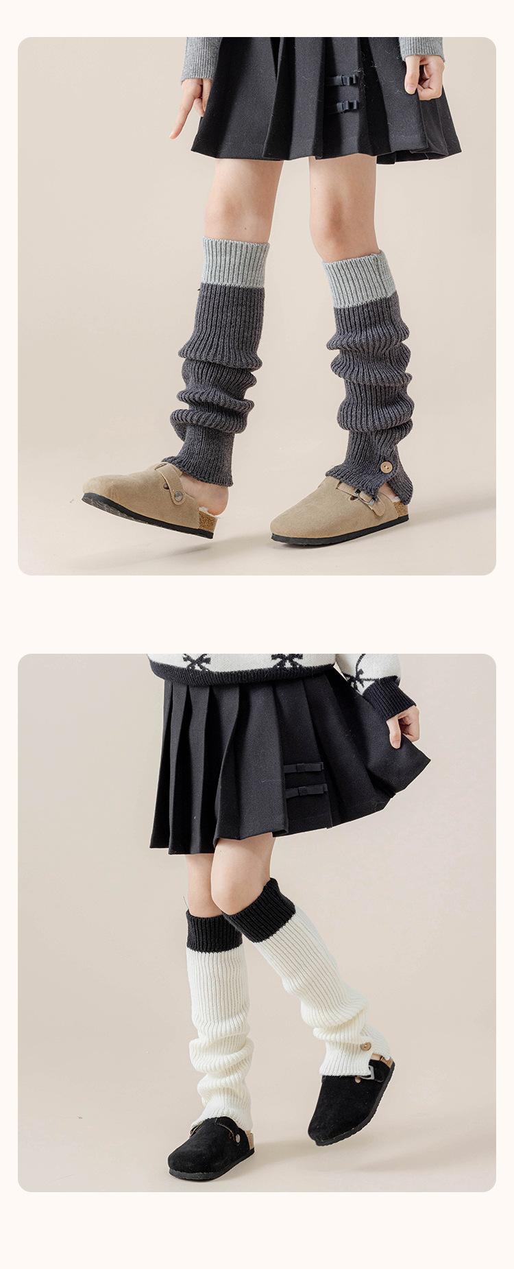 Calcetines para niñas, calcetines de pila a juego de colores, vintage, otoño e invierno, marrón, con botones divididos, de punto, largos y cálidos, para cubrir las piernas.
