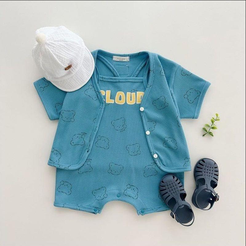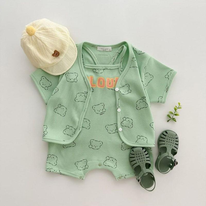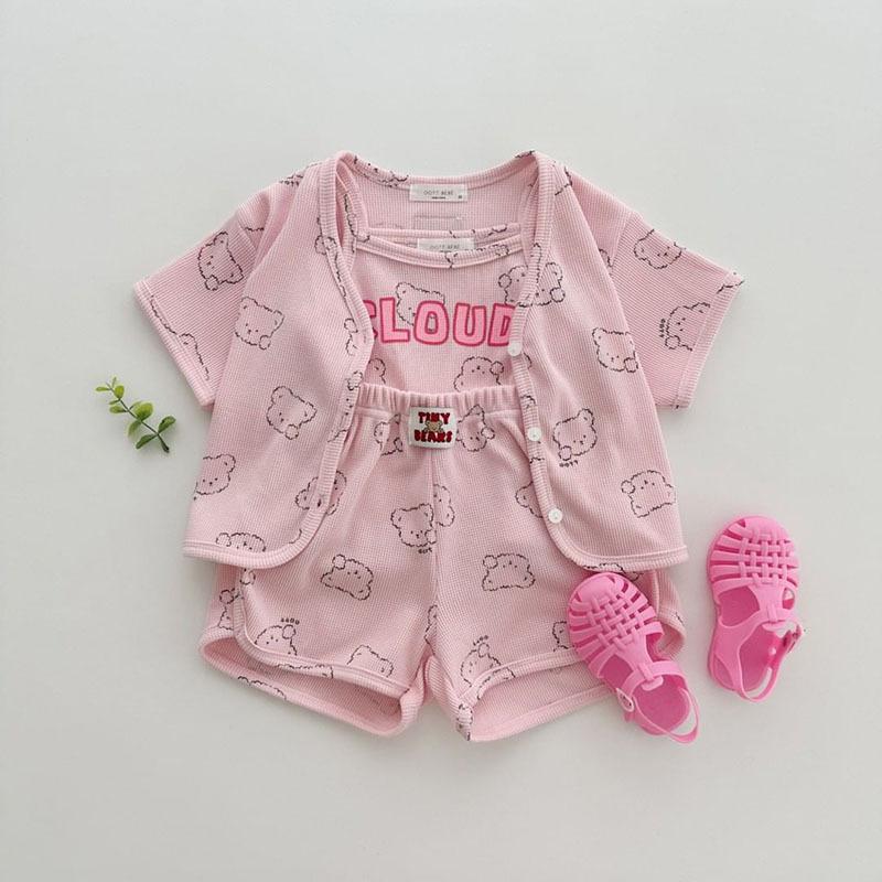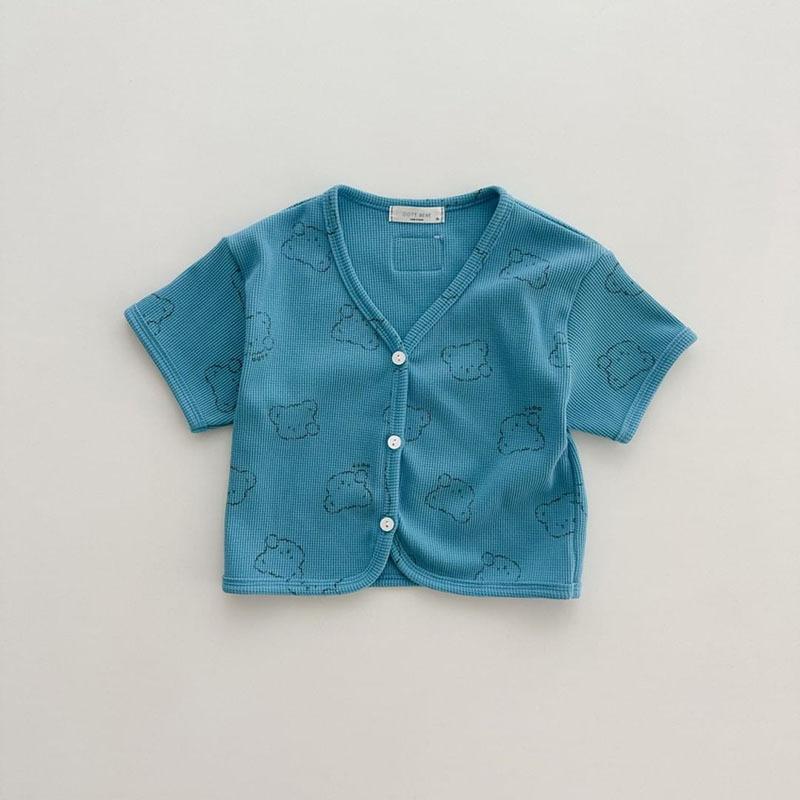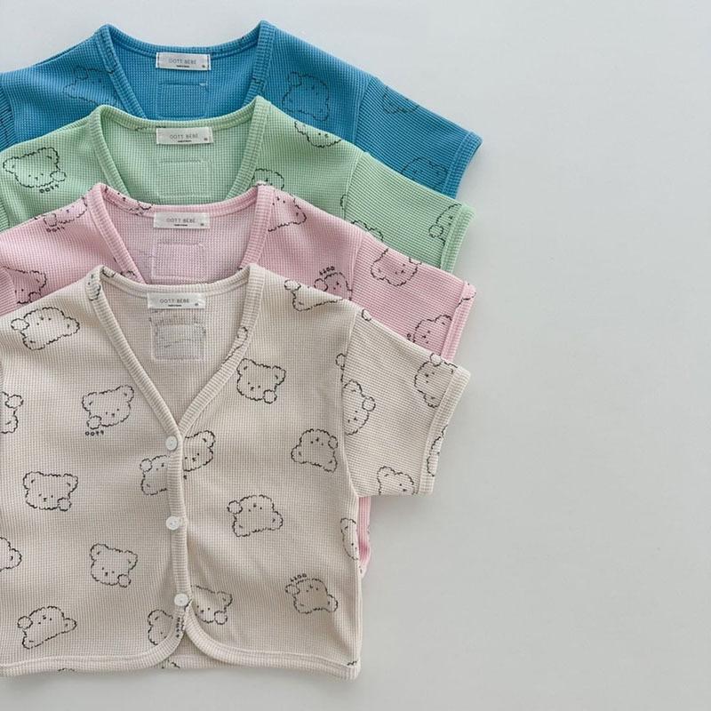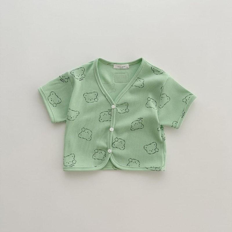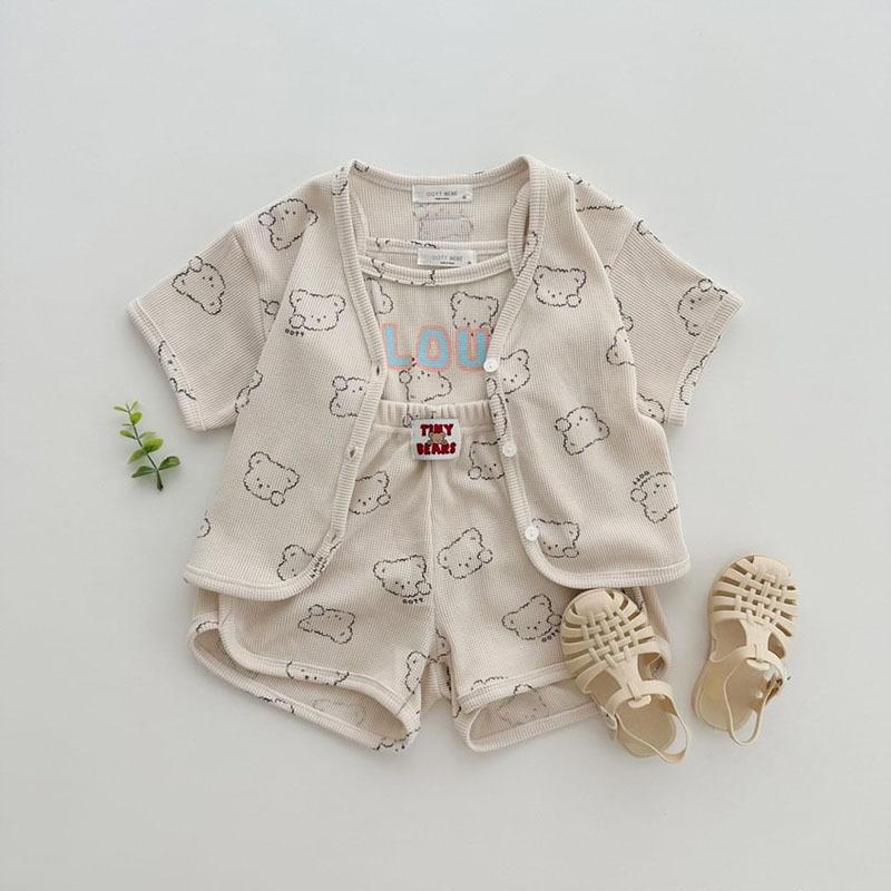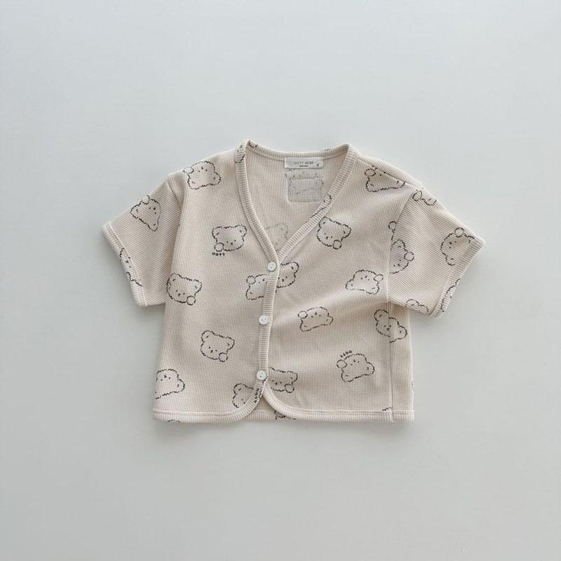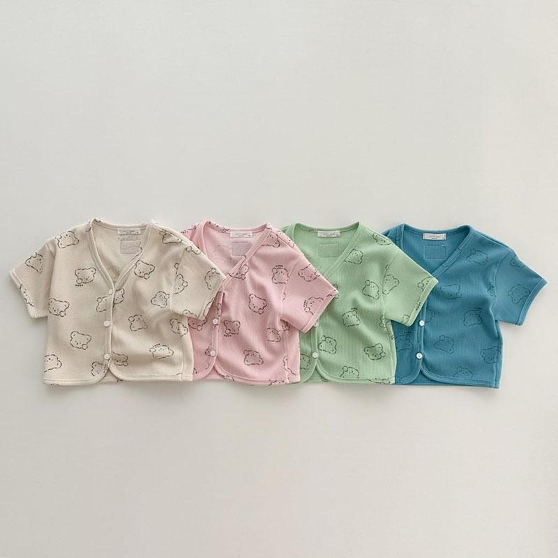 Nueva camiseta de manga corta con estampado completo de oso estilo coreano ins para hombre y mujer, camisa holgada casual, abrigo para niños, gofre de algodón puro