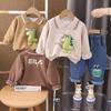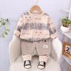 Sudadera deportiva informal para niños, otoño 2024, primavera y otoño, nueva sudadera de cuello redondo para niño, manga larga, pantalones de rayas de dos piezas para niños