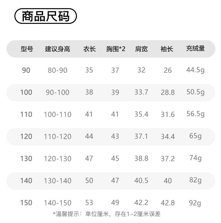 90 down filling capacity 44.5g, 100 down filling capacity 50.5g, 110 down filling capacity 56.5g, 120 down fil...