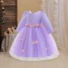 Vestido infantil de princesa, recién llegado, de tela forjada, de manga larga, con tutú de flores tridimensionales, ideal para festivales, presentaciones de piano.