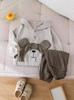 Conjunto de ropa de otoño para niños 2024, nueva ropa de primavera y otoño para niños, ropa bonita para niños, conjunto de dos piezas de manga larga con capucha para bebés