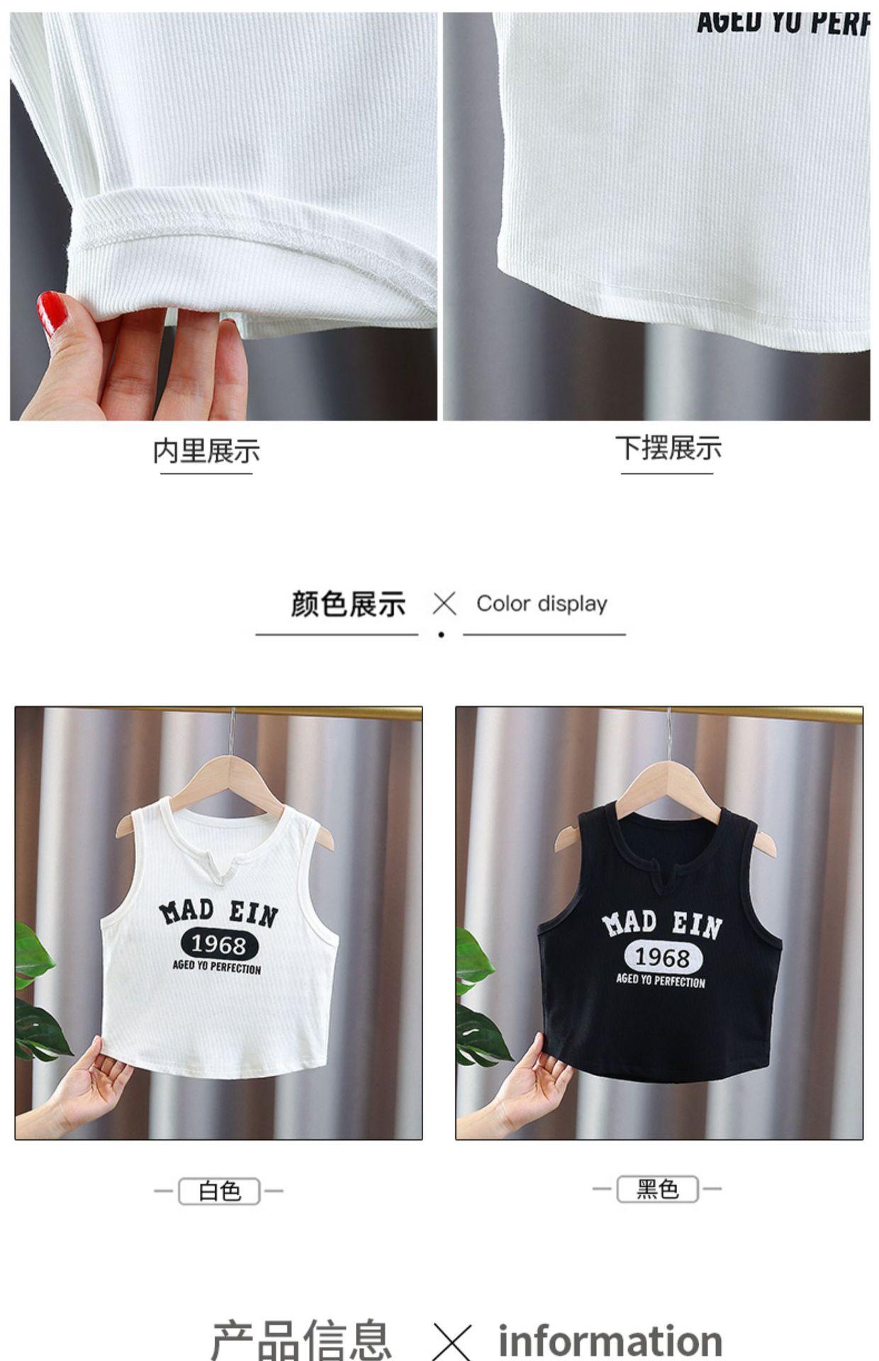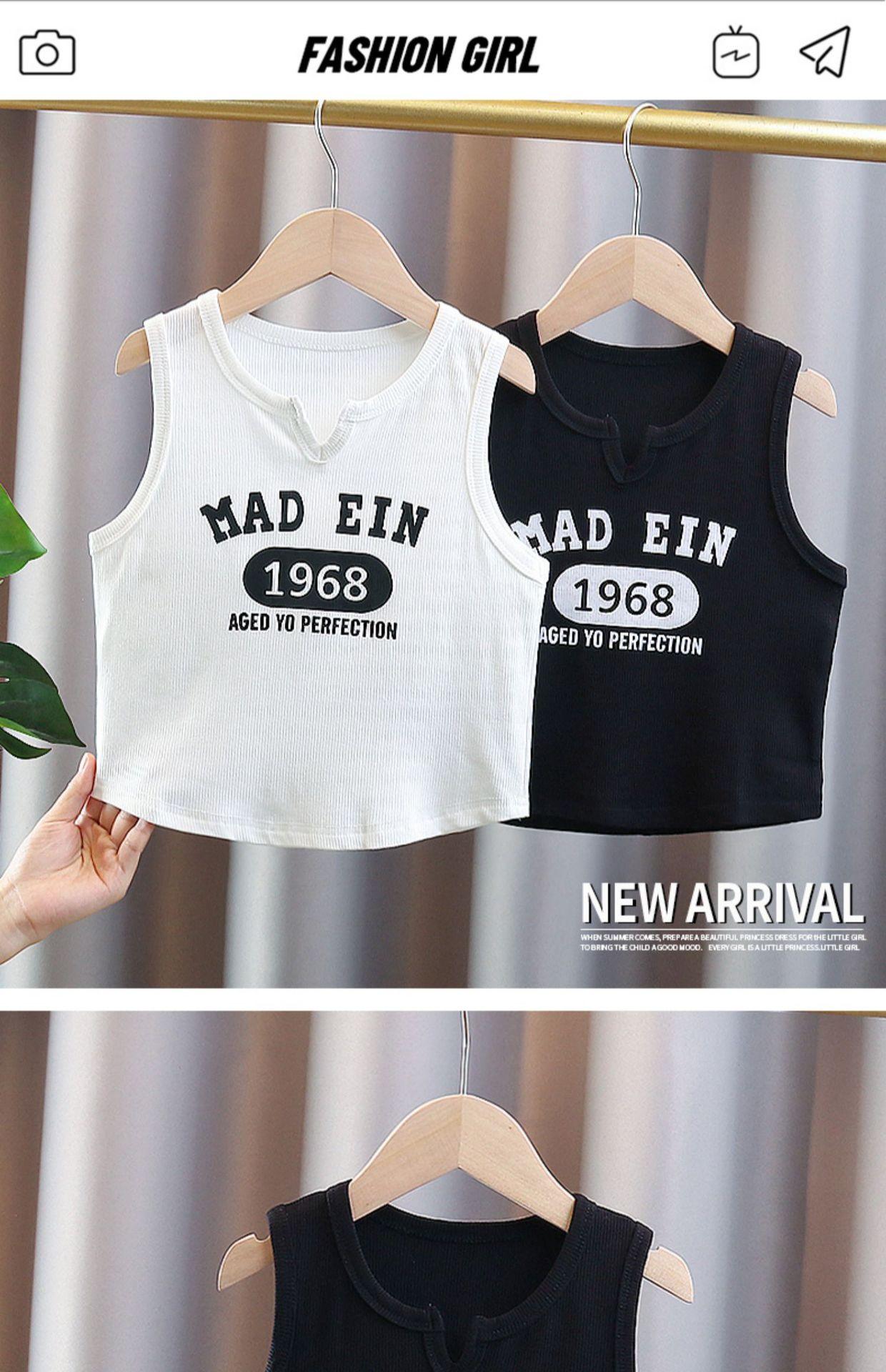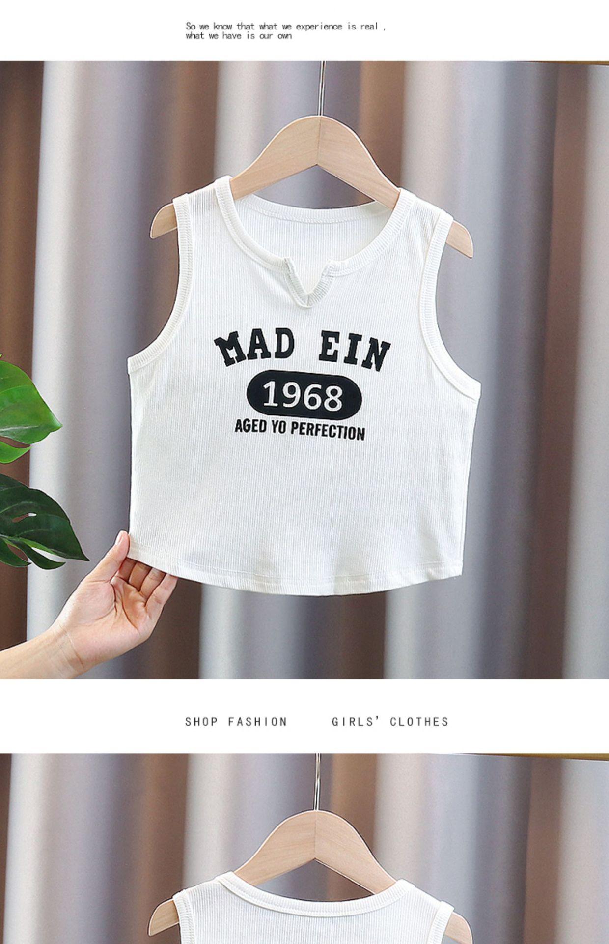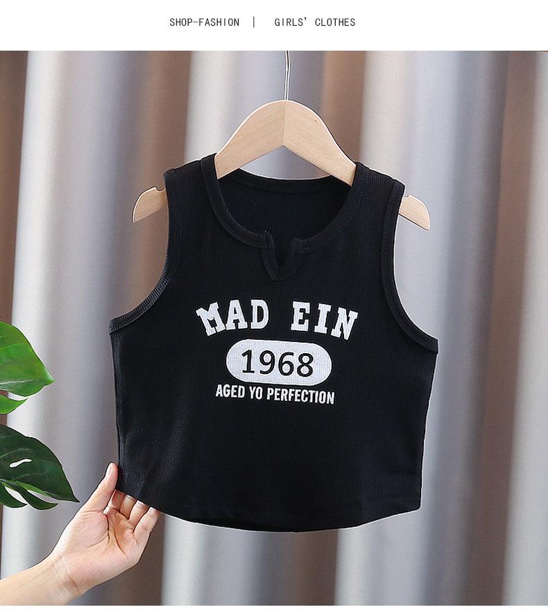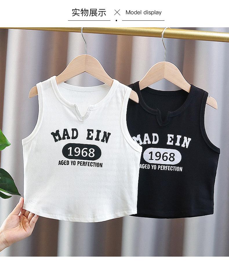 Chaleco de verano para niñas, nuevo estilo coreano, sin mangas, con letras, top corto, de moda, para niños medianos y grandes, ropa exterior que combina con todo.