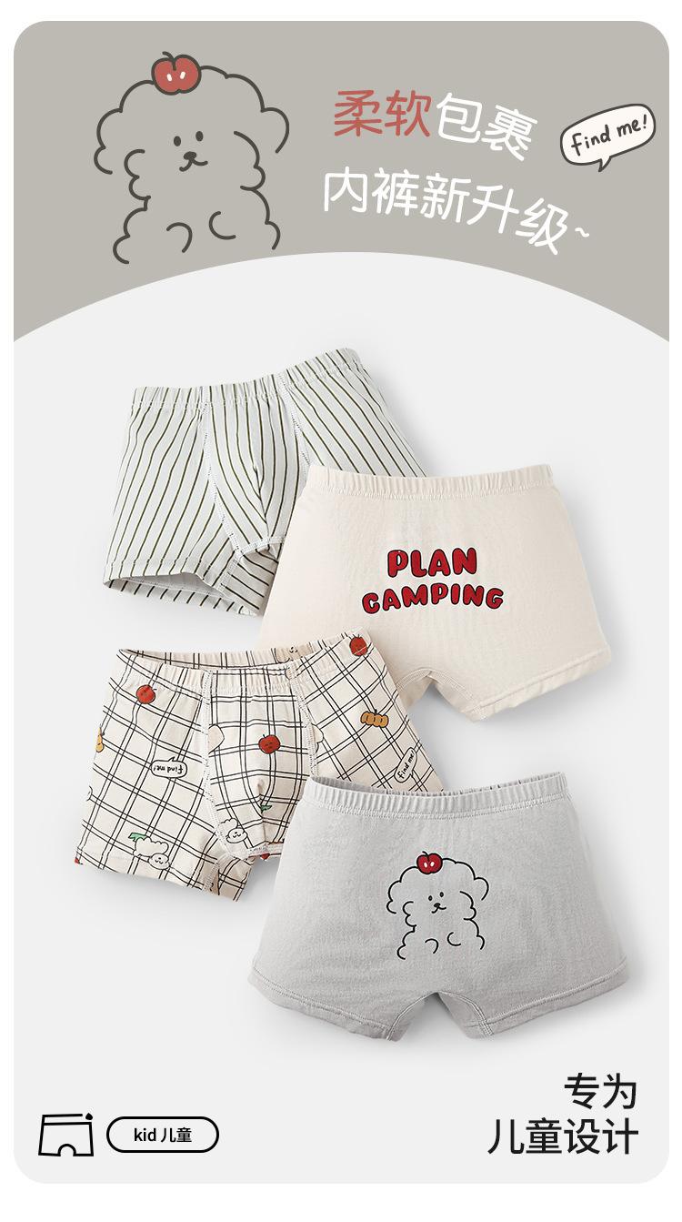 Ropa interior infantil N158, venta al por mayor, de algodón puro, clase A, con letras de dibujos animados, calzoncillos tipo bóxer a rayas a cuadros para niños.