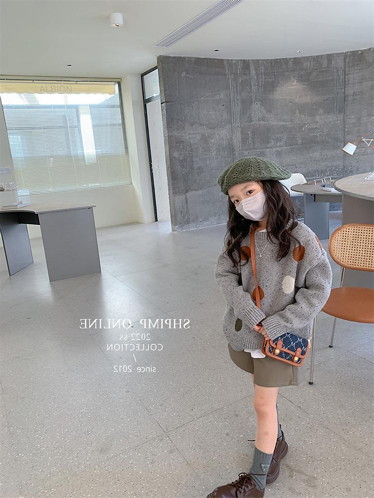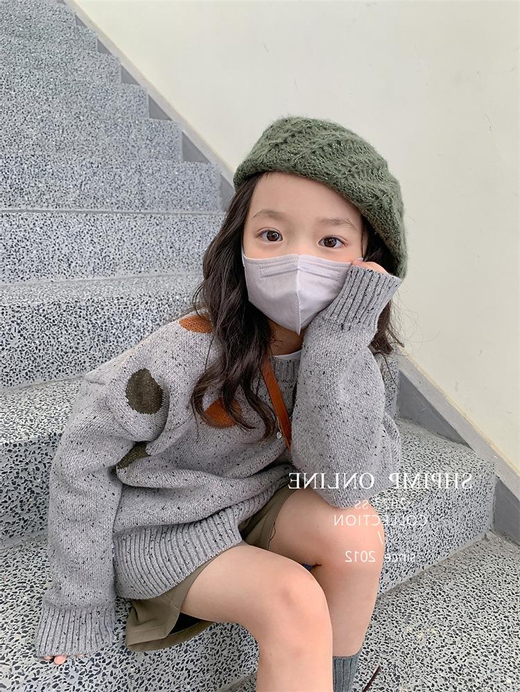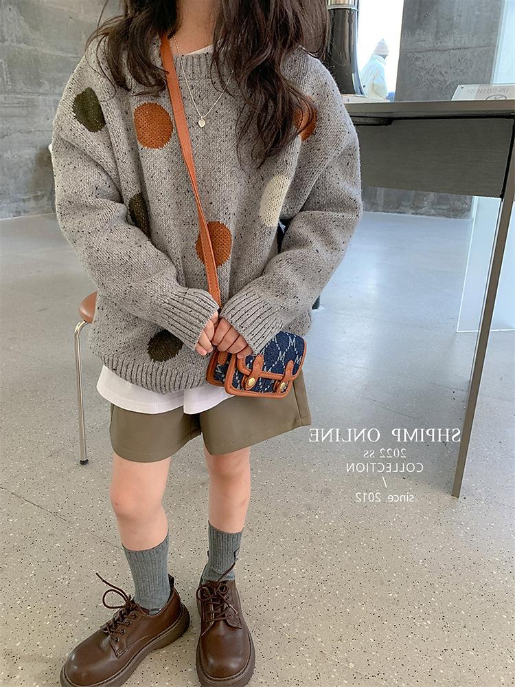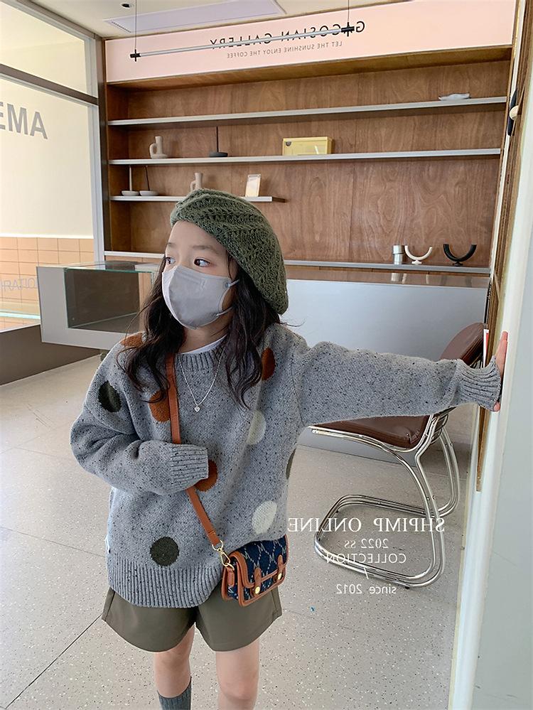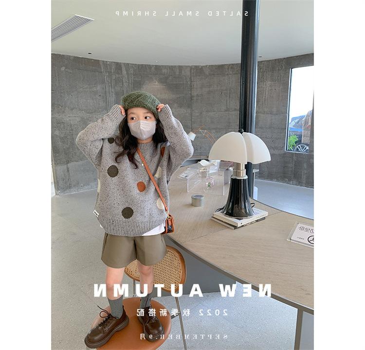 Suéter Holgado de Cuello Redondo en Color Contraste para Niñas 2024 Otoño e Invierno Nuevo Top de Manga Larga de Estilo Casual a la Moda para Niños