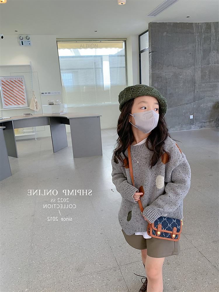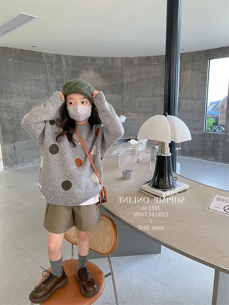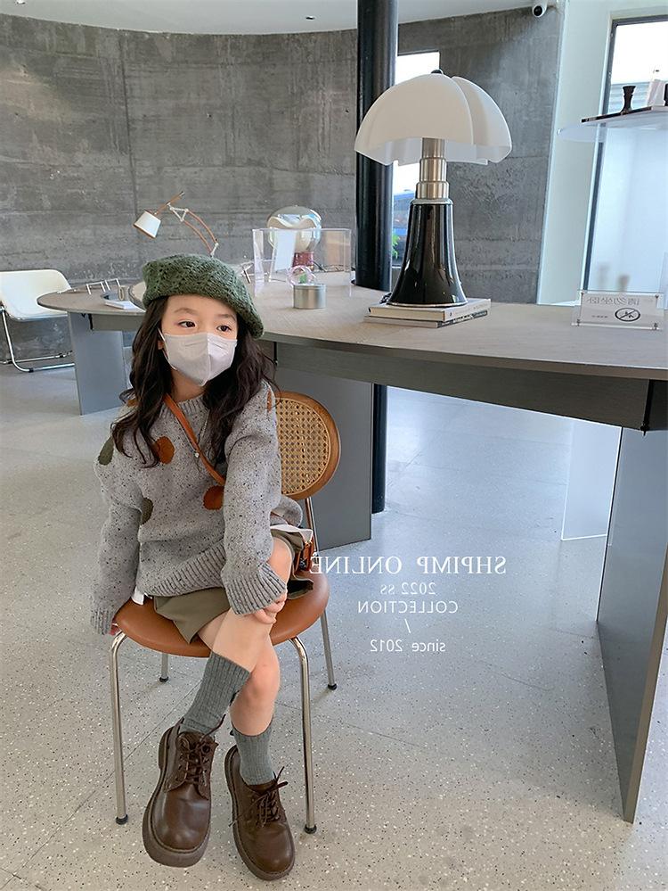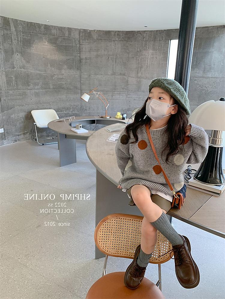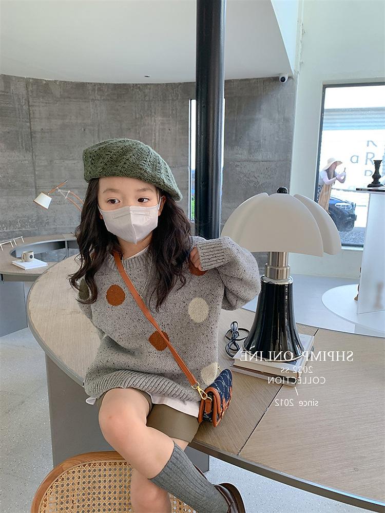 Suéter Holgado de Cuello Redondo en Color Contraste para Niñas 2024 Otoño e Invierno Nuevo Top de Manga Larga de Estilo Casual a la Moda para Niños