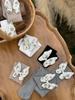 Calcetines para niños, medias de bebé, primavera y otoño, calcetines de tela de color liso con etiqueta y lazo para niñas.