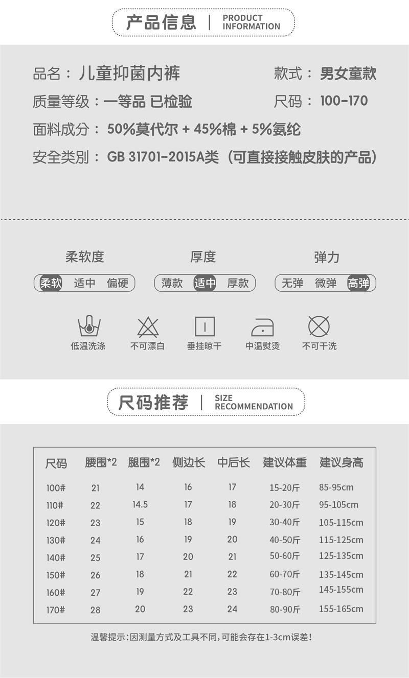 Calzoncillos bóxer para niños y niñas, cuatro calzoncillos antibacterianos para niños, 50% algodón Tencel Mo