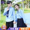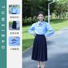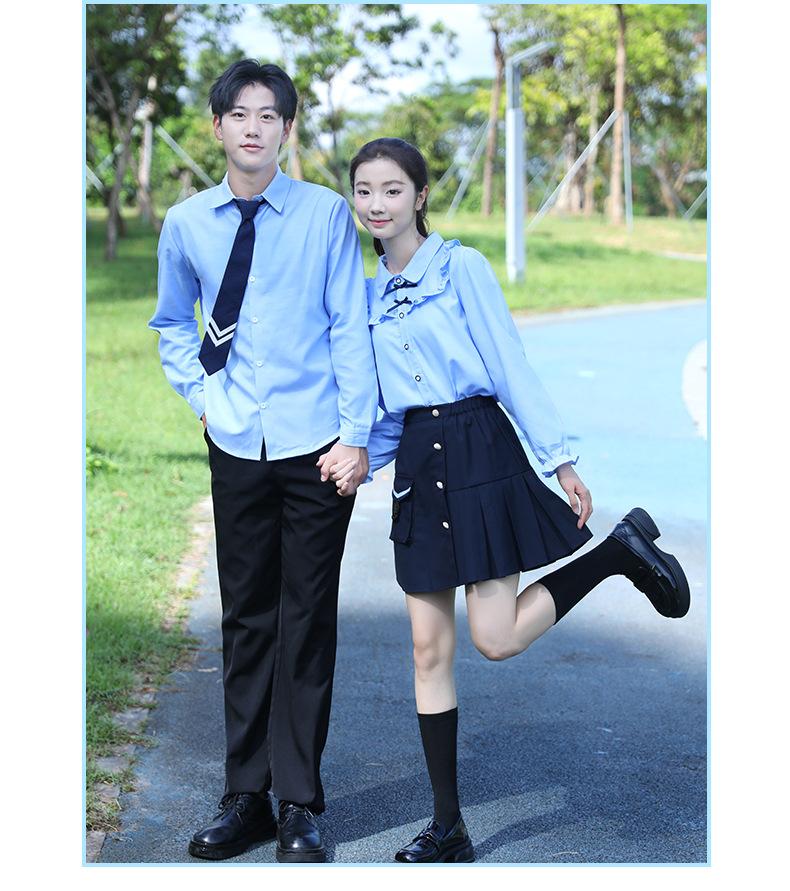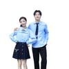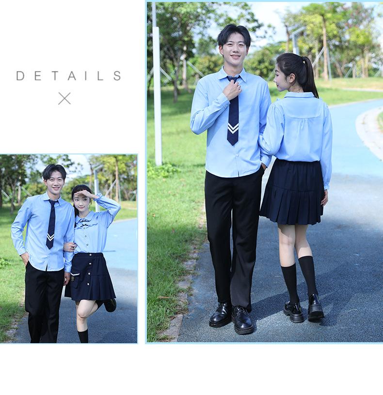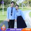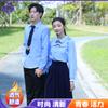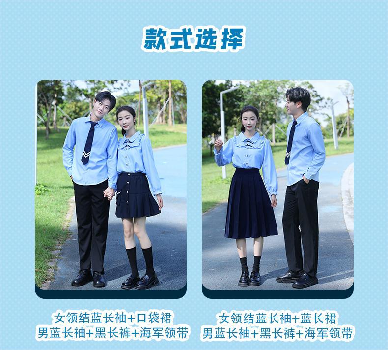 Women's Blue Tie Long-Sleeve Pocket Skirt, Men's Blue Long Sleeve Black Pants Navy Tie, Women's Blue Long-Sleeved Blue Dress