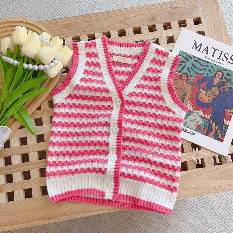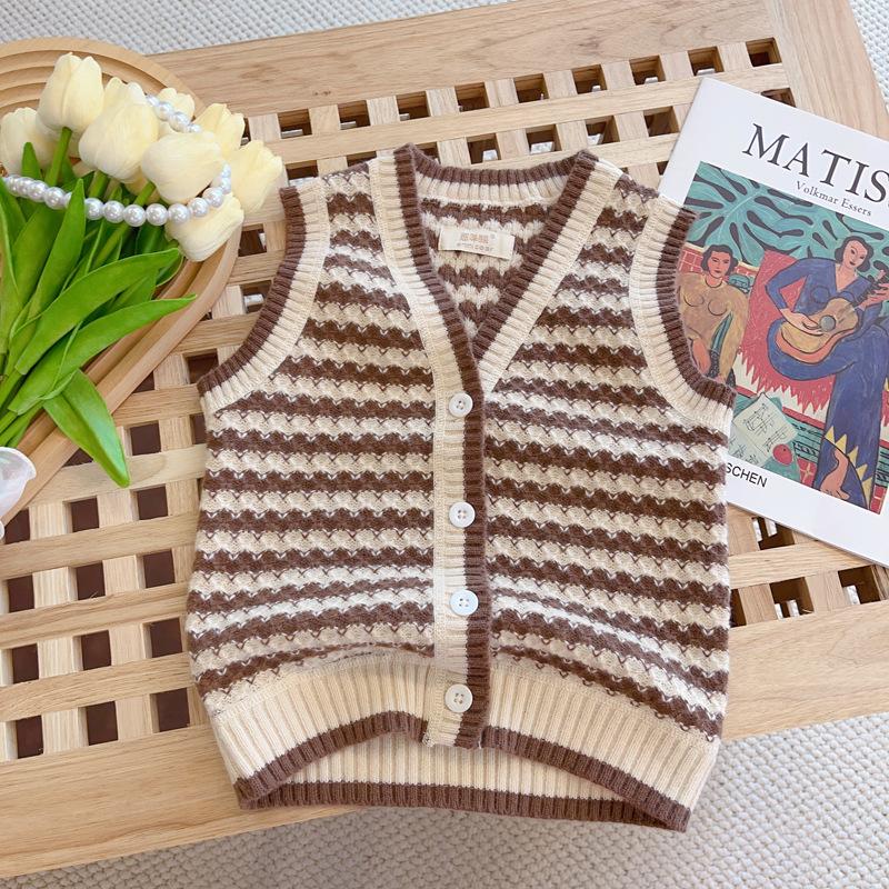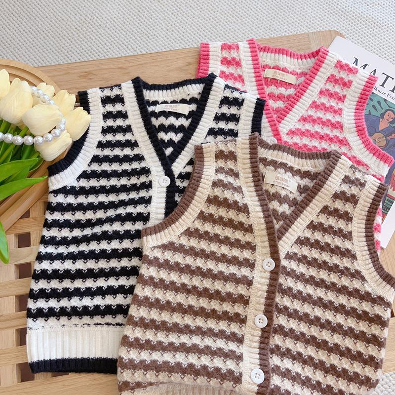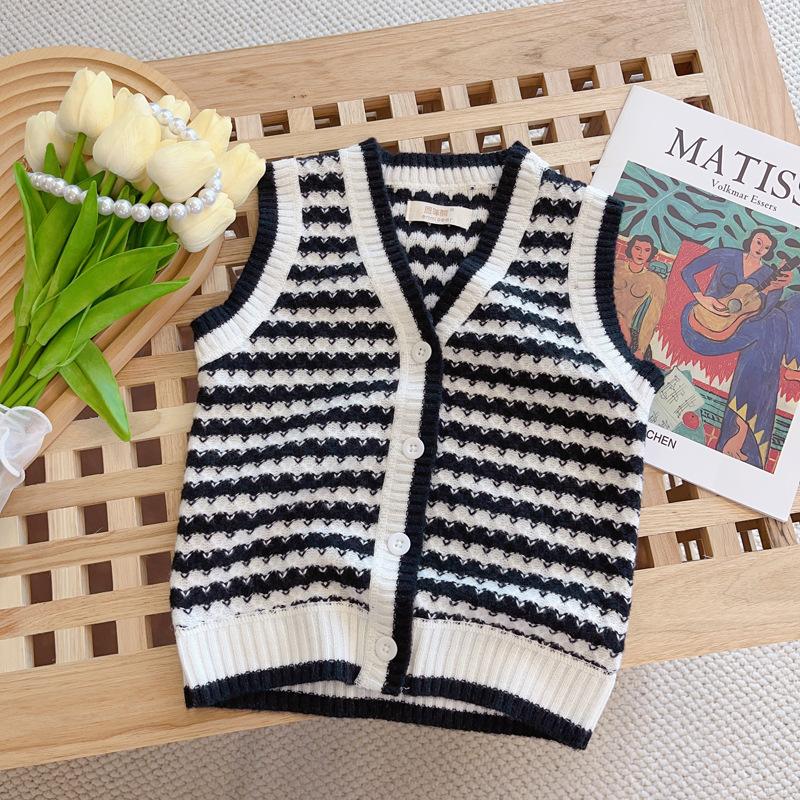 Chaleco de punto para niños, cárdigan infantil, estilo occidental, conjunto de otoño para niños, suéter para bebé de mujer, chaleco de moda