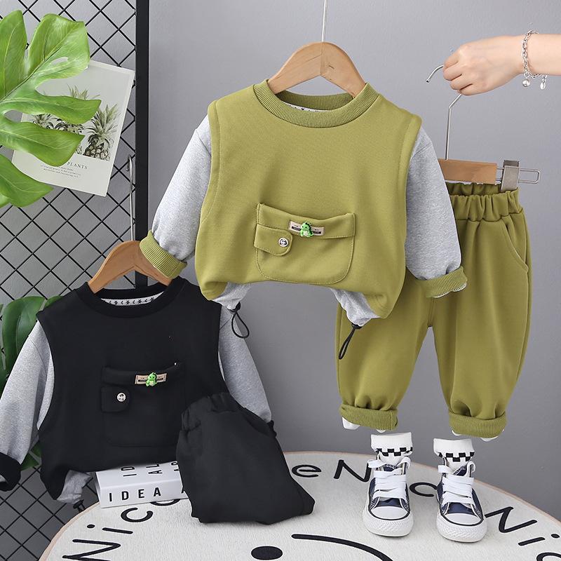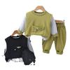Traje de niño para bebé, primavera y otoño de 2024, nuevo chaleco de otoño para bebé de estilo coreano, conjunto deportivo de dos piezas de tres piezas falso