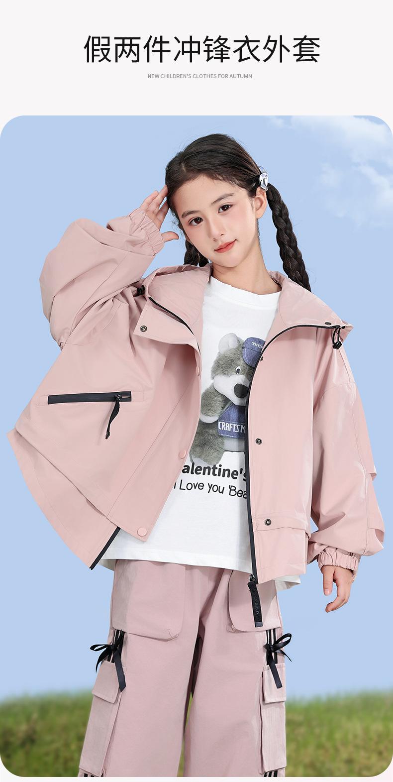 | Chaqueta para niñas, primavera y otoño 2024, nueva, impermeable, de tres capas, para exteriores, montañismo, chaqueta infantil, ropa de otoño. |
