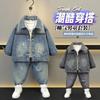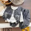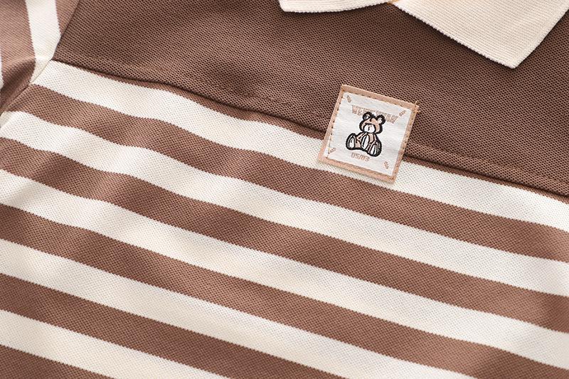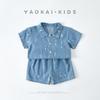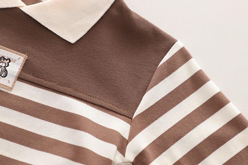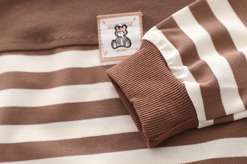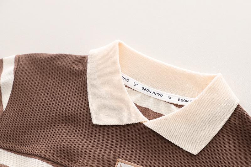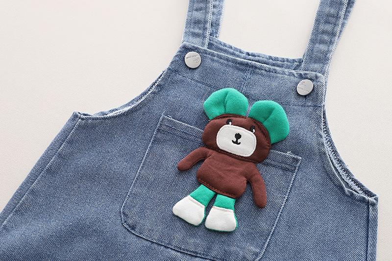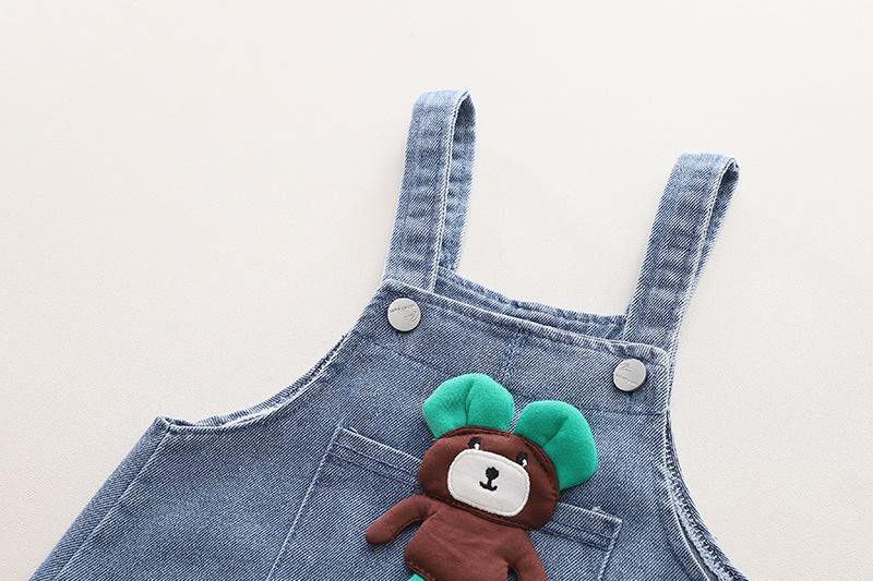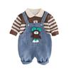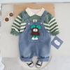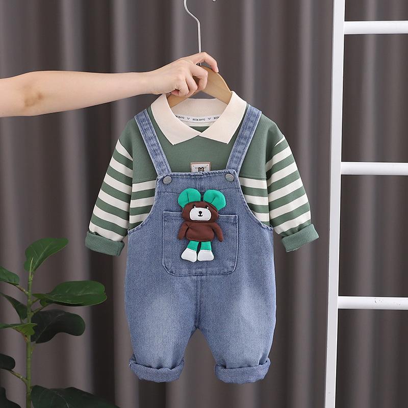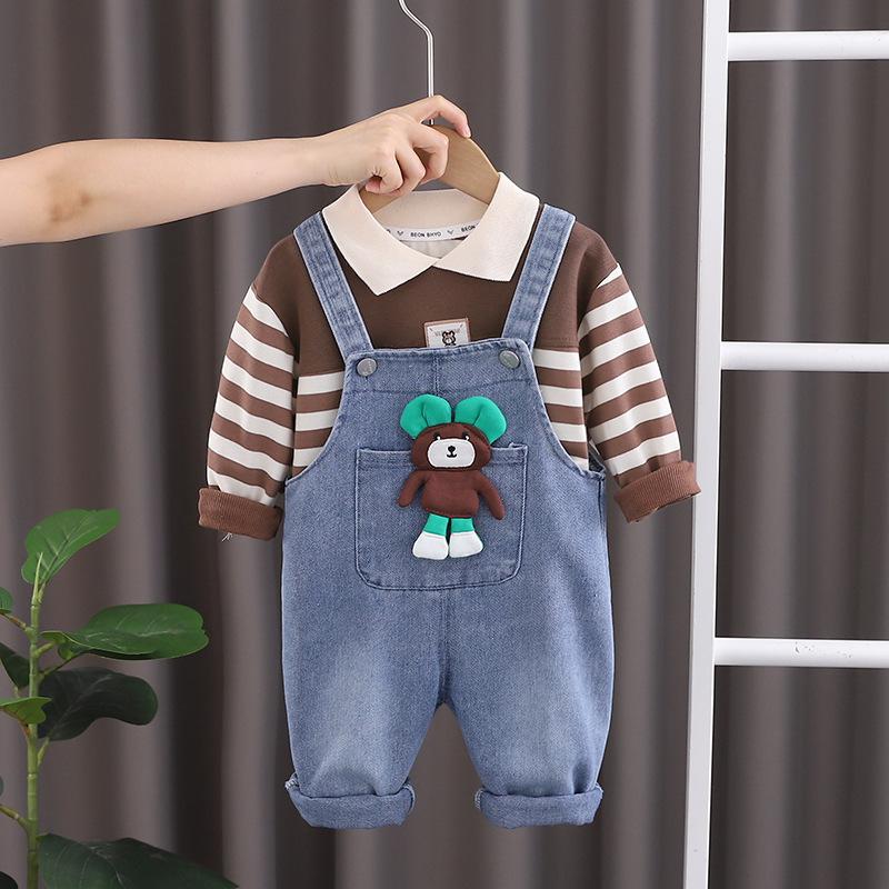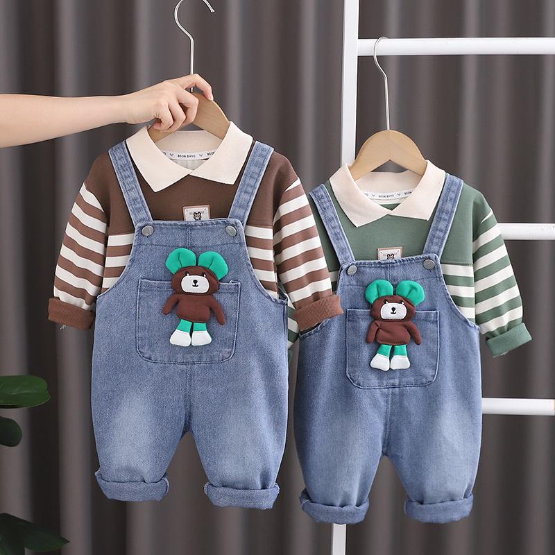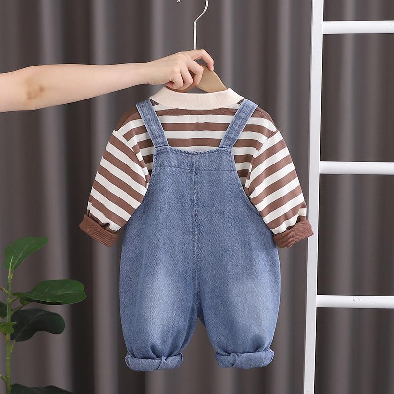 Conjunto de tirantes para bebé, primavera y otoño 2024, camiseta de solapa a rayas con estilo para niño, pantalones vaqueros con tirantes para niño