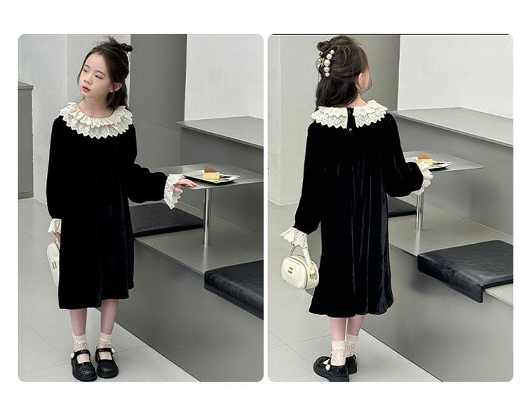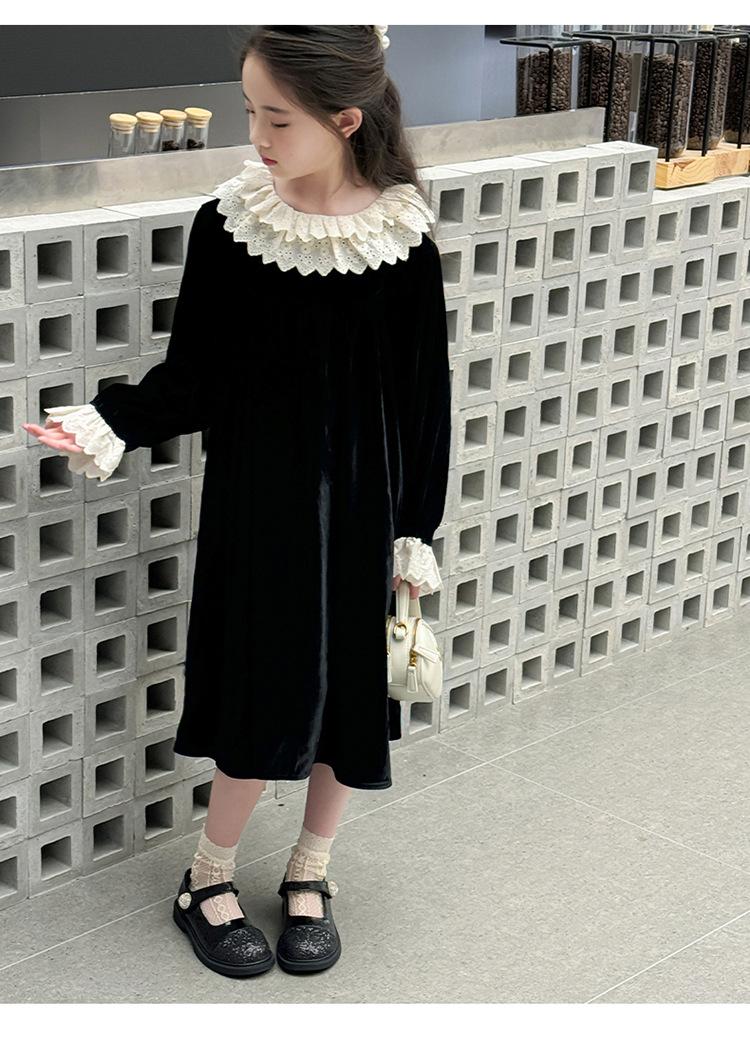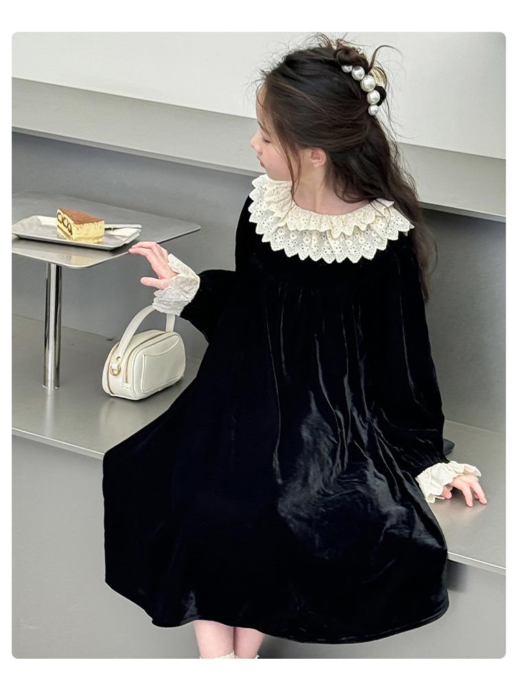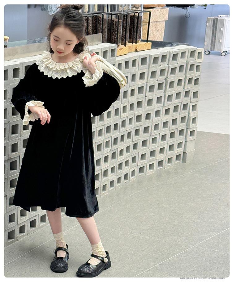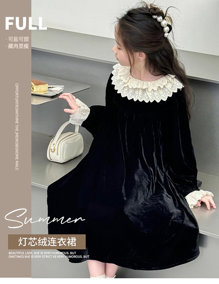 Vestido de niña 2024 Nuevo vestido de terciopelo de alta gama de primavera y otoño para niñas Vestido de princesa de otoño para comercio exterior