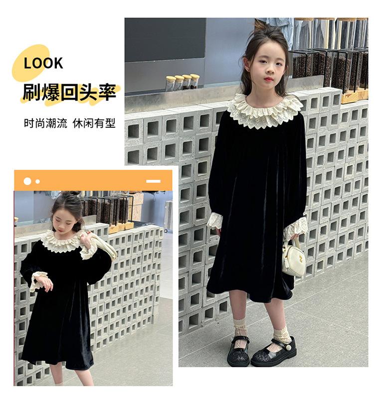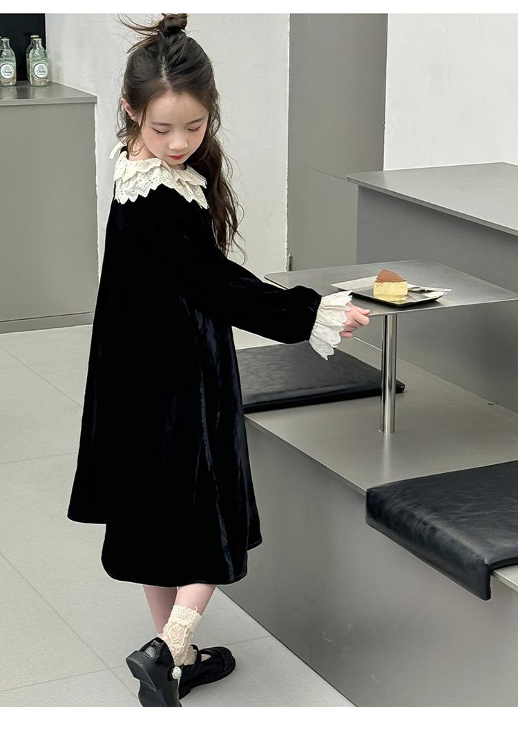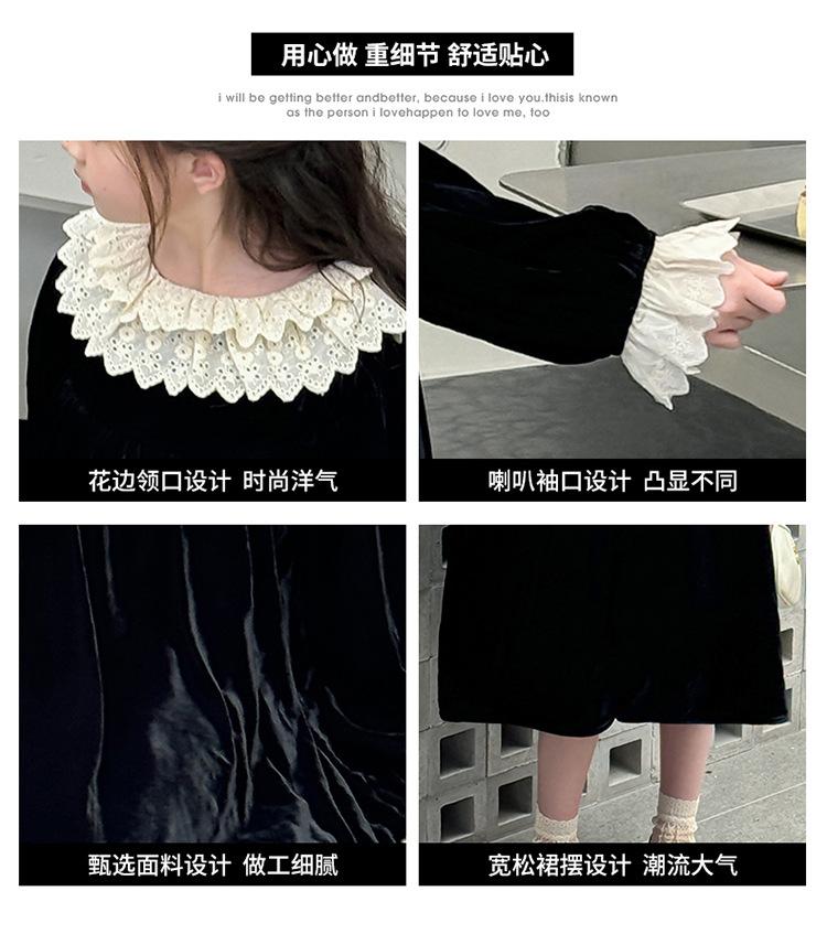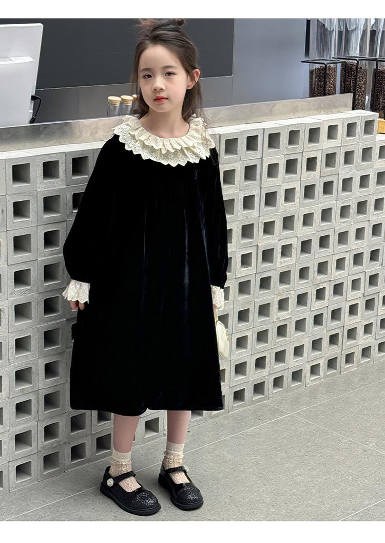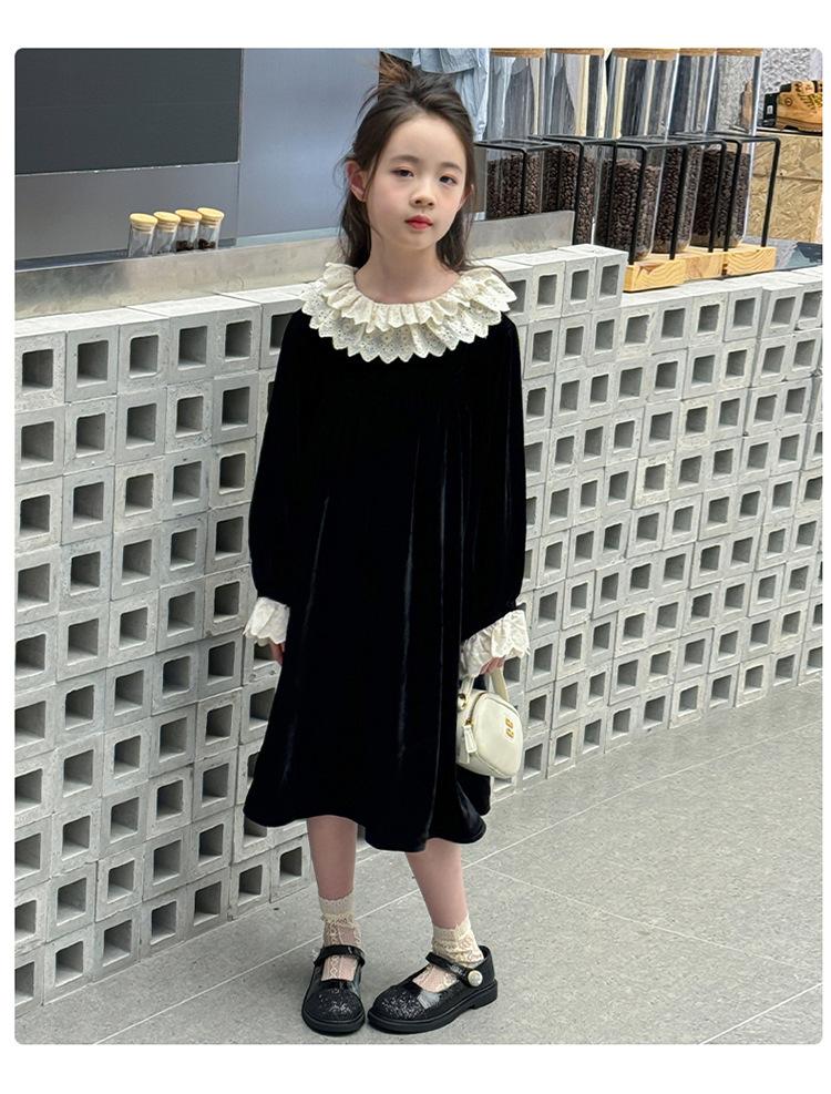 Vestido de niña 2024 Nuevo vestido de terciopelo de alta gama de primavera y otoño para niñas Vestido de princesa de otoño para comercio exterior