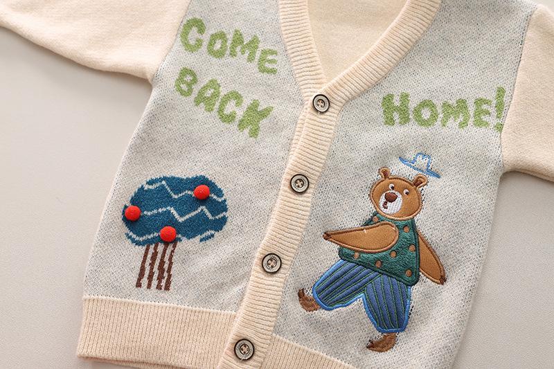 Green 24058 bear sweater cardigan long-sleeved three-piece set