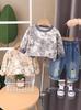 Traje de otoño para niños 2024, nueva ropa coreana para primavera y otoño para niños, suéter para bebé, cárdigan de manga larga, tres piezas, de moda