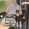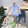Conjunto de camisa para niño, primavera y otoño de 2024, nueva ropa de estilo occidental para niños, conjunto de dos piezas de camisa de manga larga para bebé.