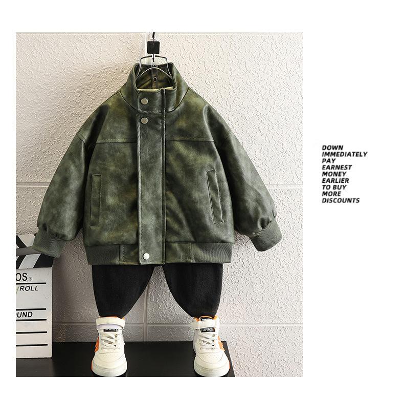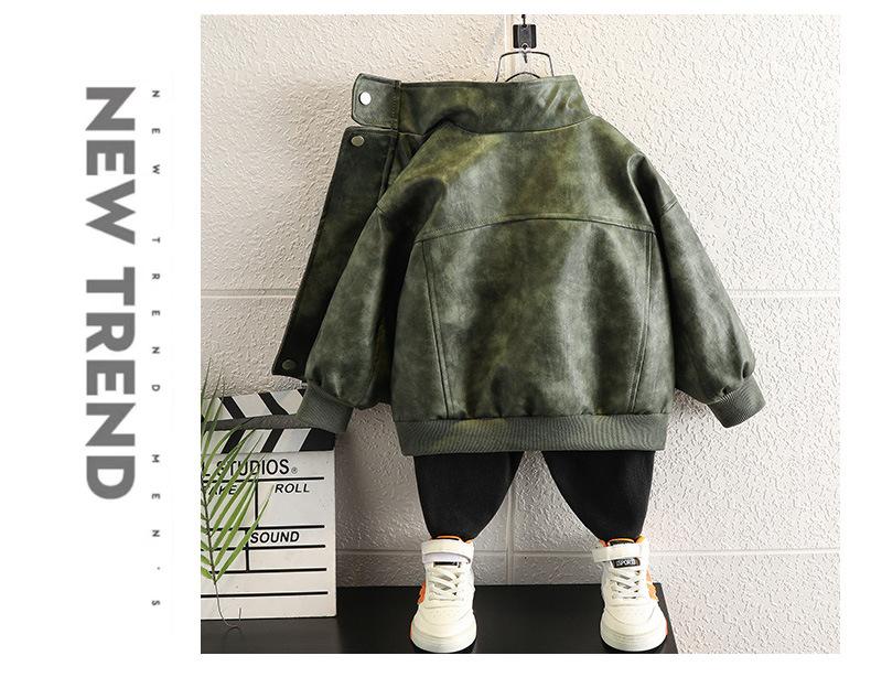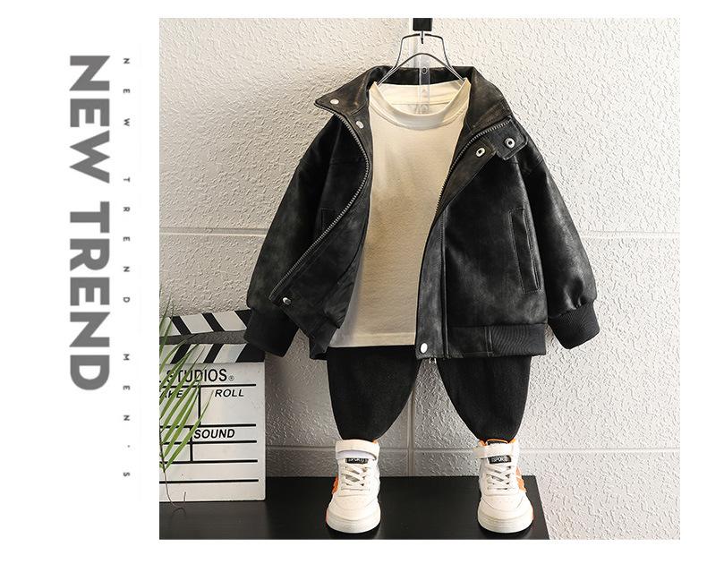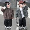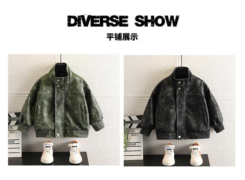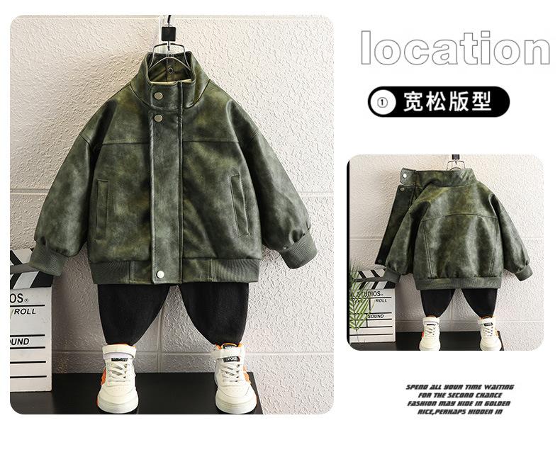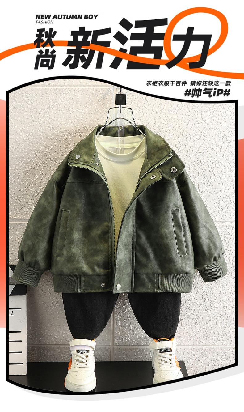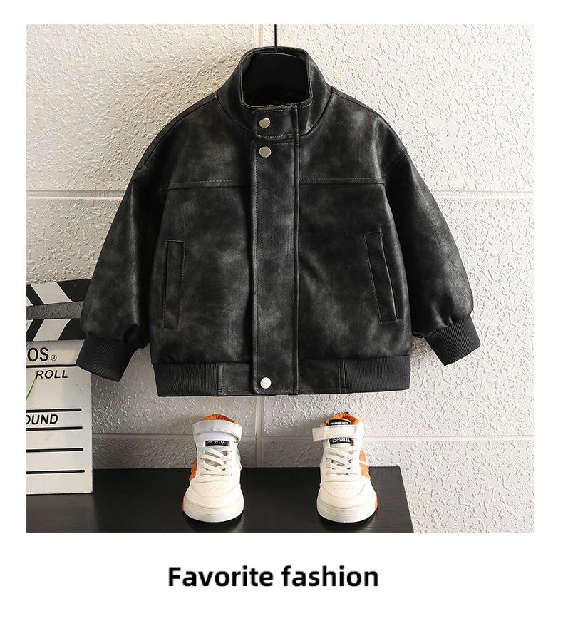 Yipi, chicos guapos, otoño 2024, cuero, nueva ropa infantil de estilo extranjero, abrigo de motocicleta de calle frita de moda para bebés, primavera y otoño